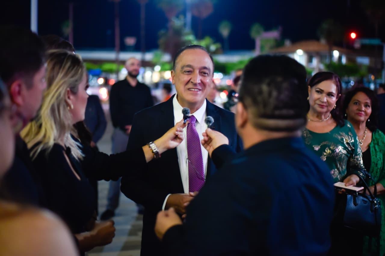 Los Mochis, Ahome, Sinaloa. – El creador cinematográfico originario de casa, Guillermo Vejar, director y productor del filme La Puerta Verde, que esté sábado se estrenó con alfombra roja en Los Mochis, se sumó al proyecto del Alcalde Antonio Menéndez De Llano Bermúdez, de construir un corredor turístico, artístico, cultural en el malecón de Topolobampo, plasmando sus huellas para una escultura en el puerto ahomense.