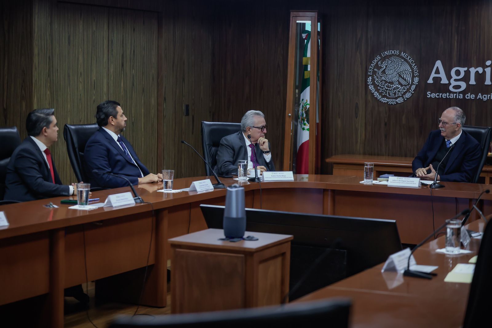Ismael Bello acompañó al mandatario estatal en esta reunión con el secretario Berdegué y María Luisa Albores de Alimentación para el Bienestar.