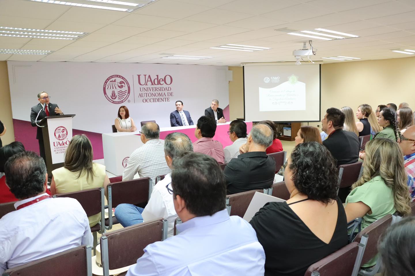 Estuvieron en presidium la Vicerrectora Académica, Dra. Guadalupe Arlene Mora Romero; el Vicerrector de Administración y Finanzas, M.C. José Luis Castillo Martínez; y el Director de la Unidad Regional Los Mochis, M.C. Ricardo Bojórquez Grijalva.