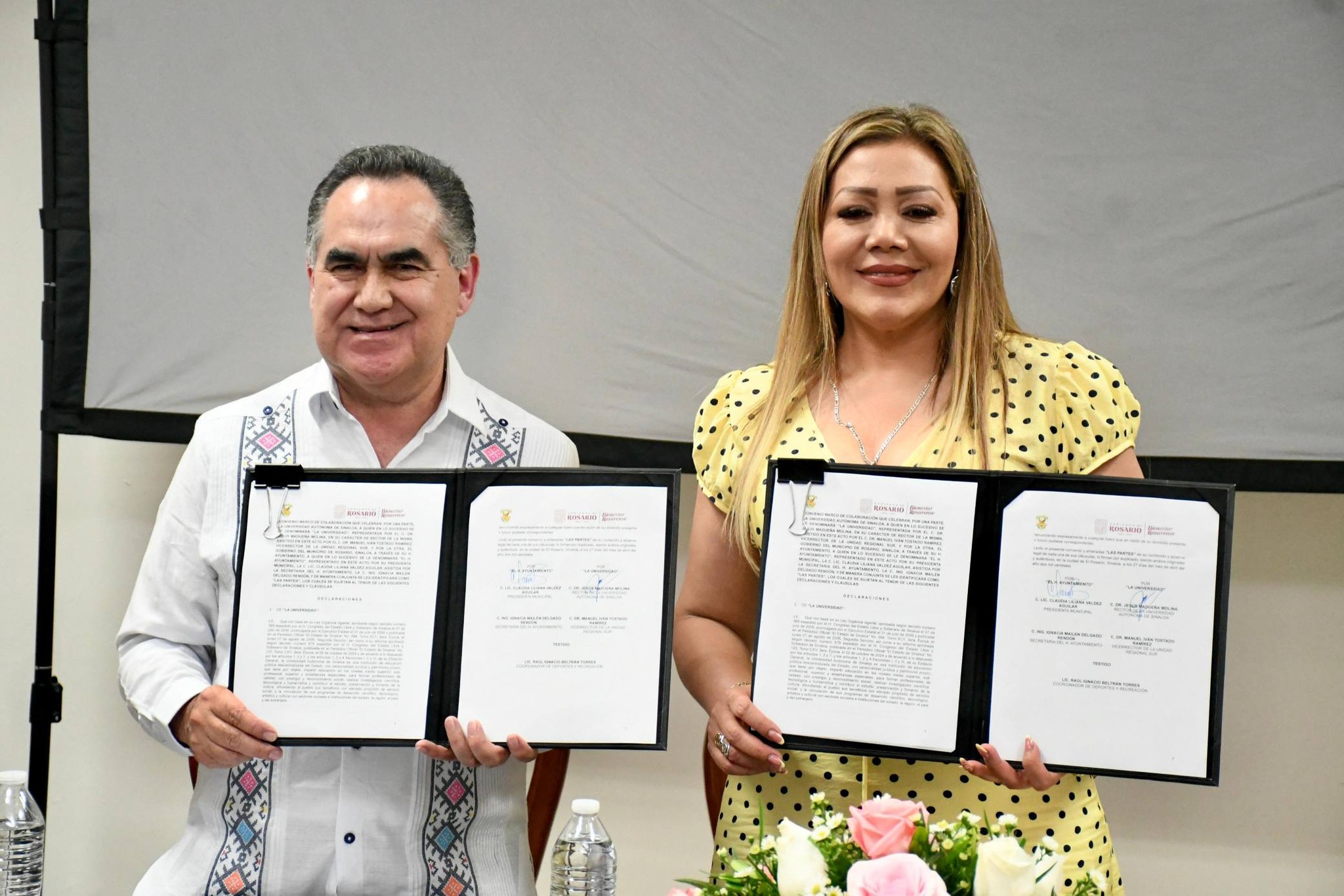 El rector de la UAS, el doctor Jesús Madueña Molina, encabezó la firma del documento junto a la presidenta municipal, Claudia Liliana Valdez Aguilar. Al respecto, el vicerrector de la zona sur, el doctor Iván Tostado, aseguró que con esta alianza se fortalecen los lazos entre ambas instituciones en favor de los rosarenses.