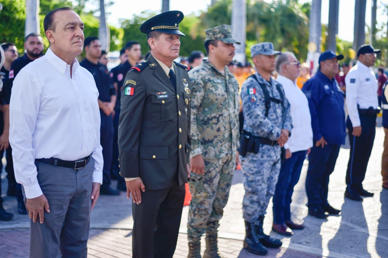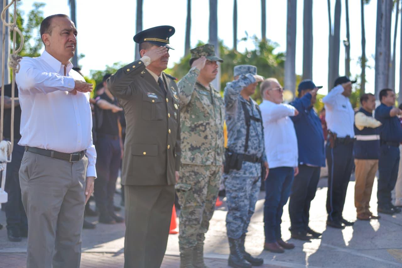 Los Mochis, Ahome, Sinaloa. – Autoridades y ciudadanos ahomenses se congregaron este viernes en Palacio Municipal para conmemorar el Día Nacional de Protección Civil, donde el Alcalde Antonio Menéndez De Llano Bermúdez, exaltó el valioso trabajo que realizan en favor de la sociedad.