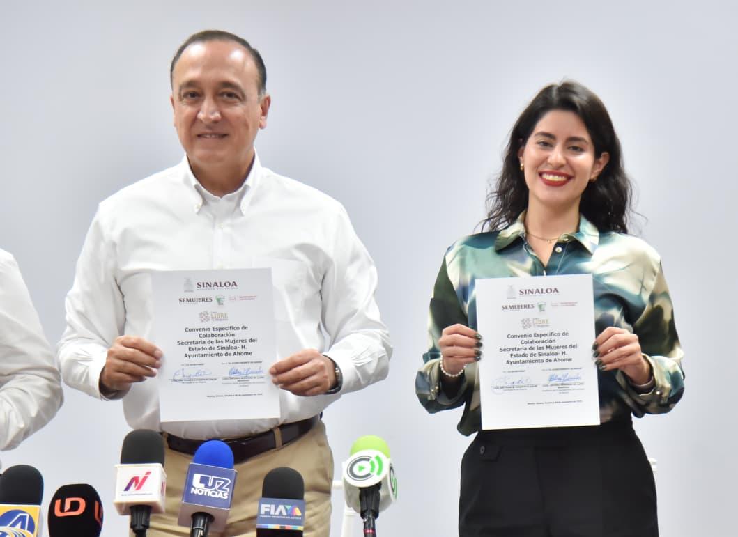 Los Mochis, Ahome, Sinaloa. – Con el objetivo de garantizar espacios libres de violencia y discriminación para las mujeres ahomenses, el Ayuntamiento de Ahome firmó convenio de colaboración con la Secretaría de las Mujeres del Estado de Sinaloa, a fin de activar en el municipio el Programa de Atención Integral para el Bienestar de las Mujeres PAIBIM.