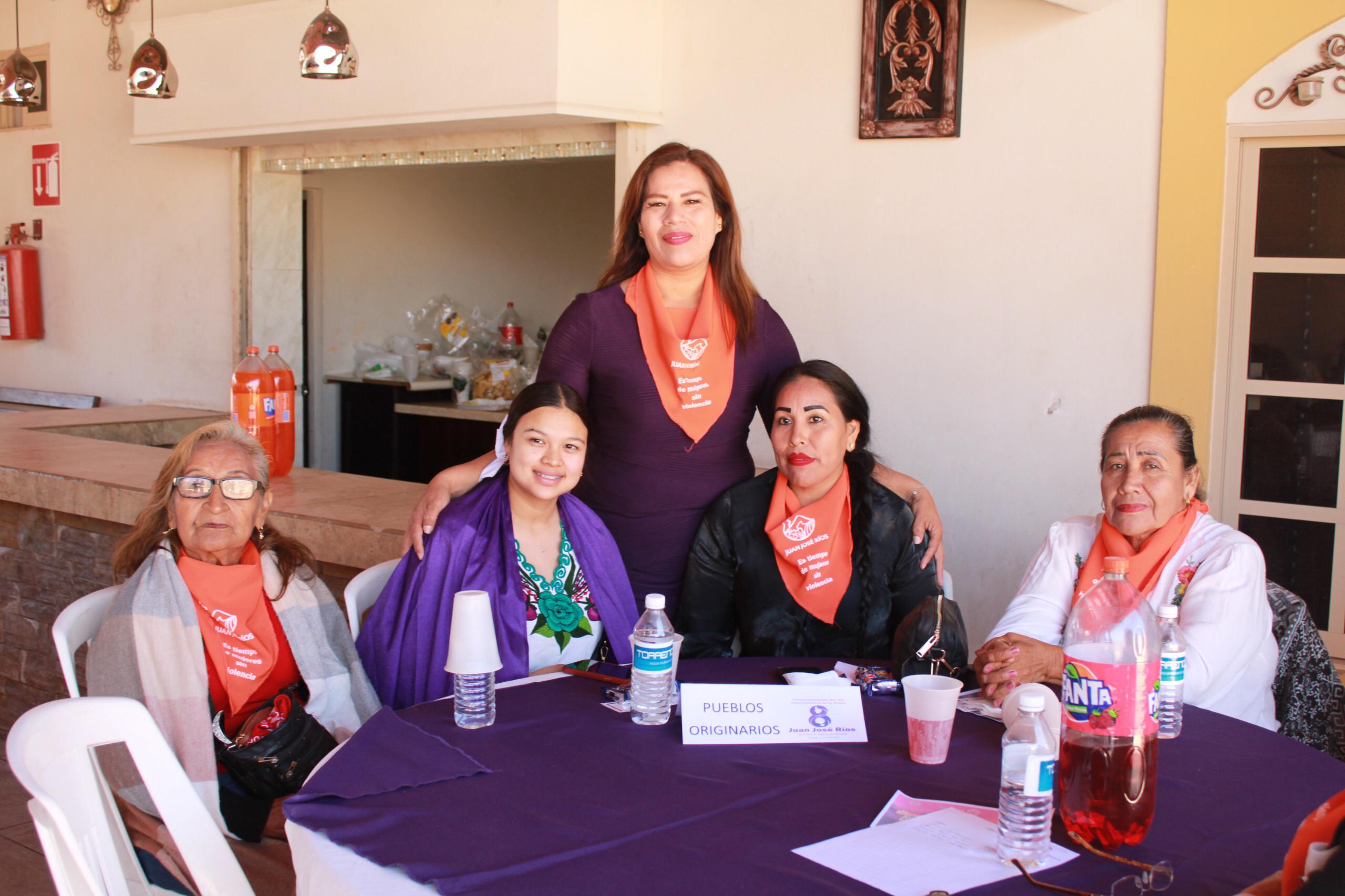 Evangelina Llanes Carreón en coordinación con la Dirección de Defensa de la Mujer a cargo de Angélica Quiñones convocaron a mujeres indígenas mayo-yoreme, alumnas, estudiantes, deportistas, amas de casa, profesionistas, intergantes del club floreval, de la asociación Judith, maestras, mujeres del sector agrícola, ICATSIN y representación del Centro de Seguridad Social.