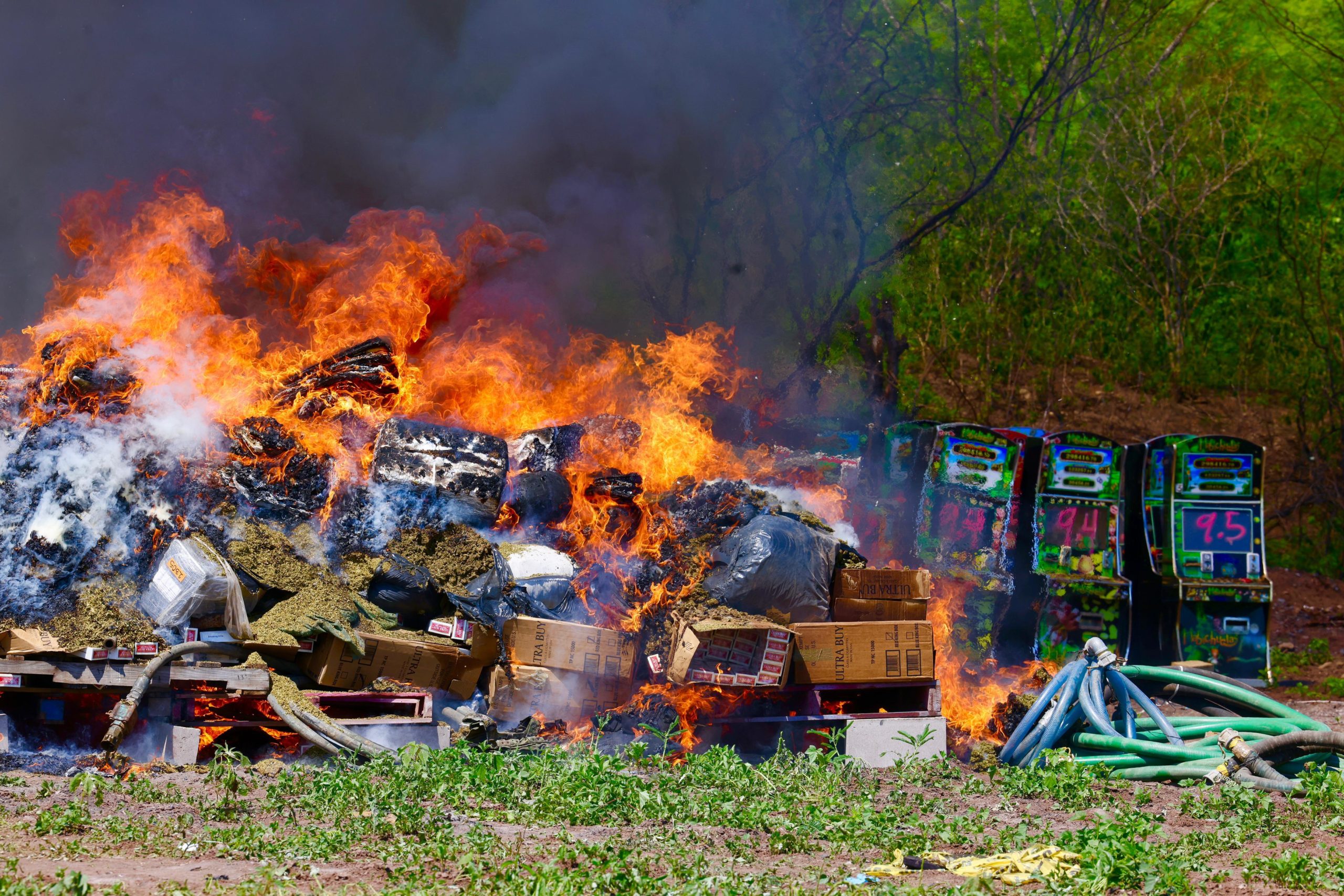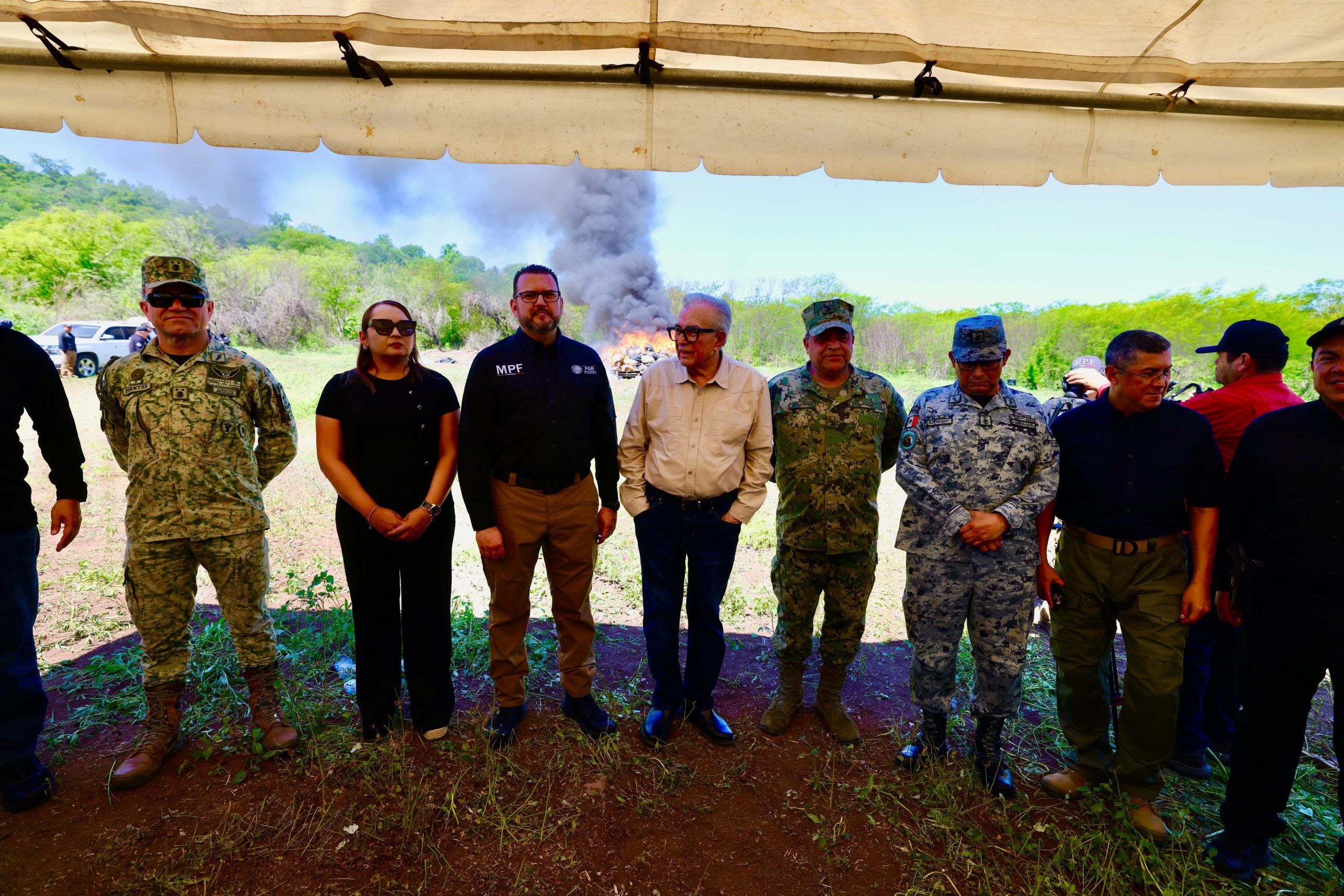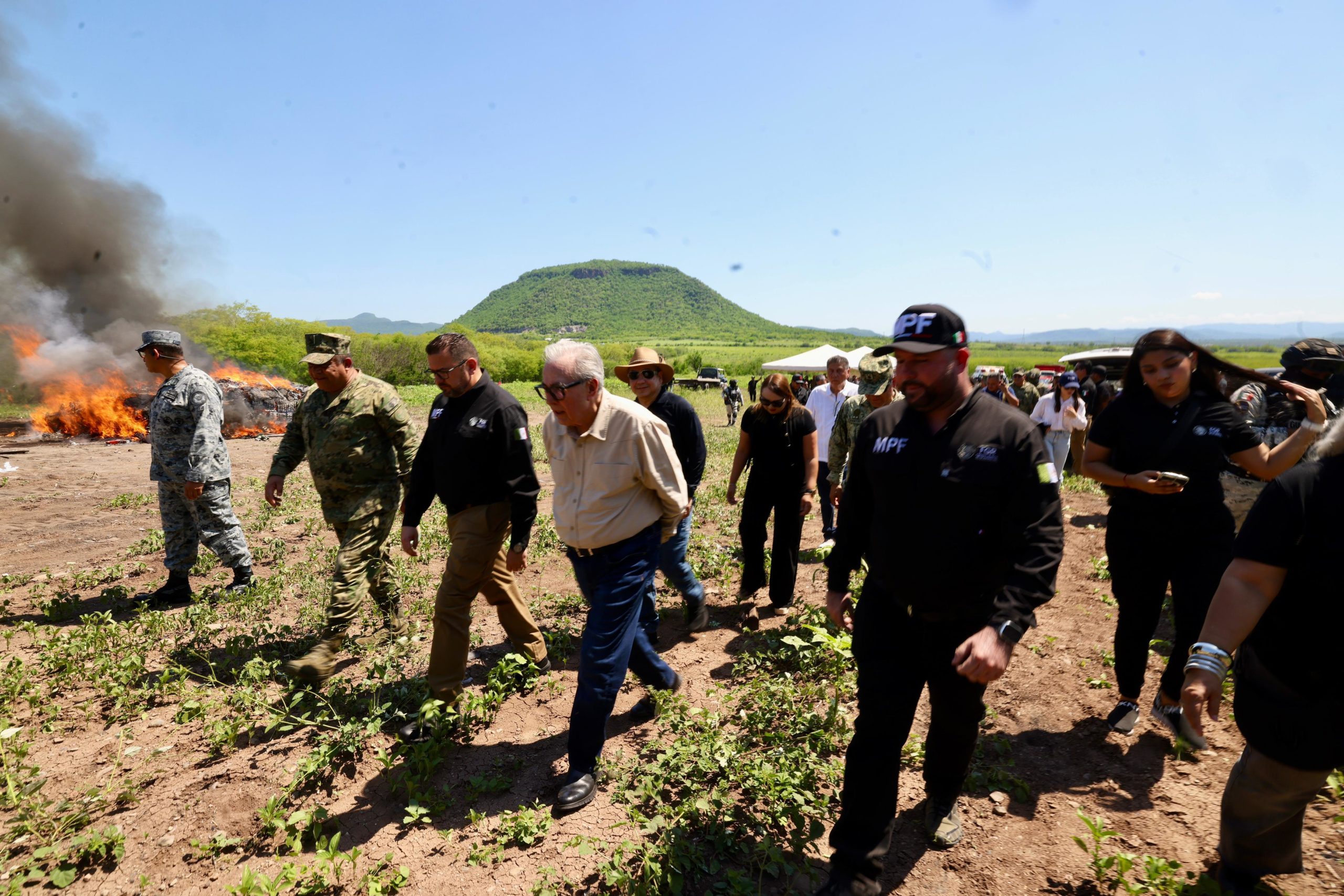A cada una y a cada uno de ustedes les tengo que agradecer el trabajo que hacen, esto que tenemos aquí es obra de su trabajo, que andan en el riesgo, que están ayudándole mucho a Sinaloa”, les reiteró el gobernador del estado a los elementos de seguridad tanto federales como locales que se dieron cita en el acto de incineración.