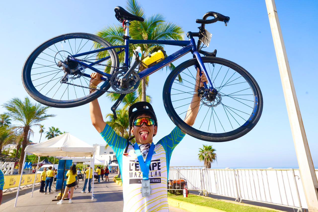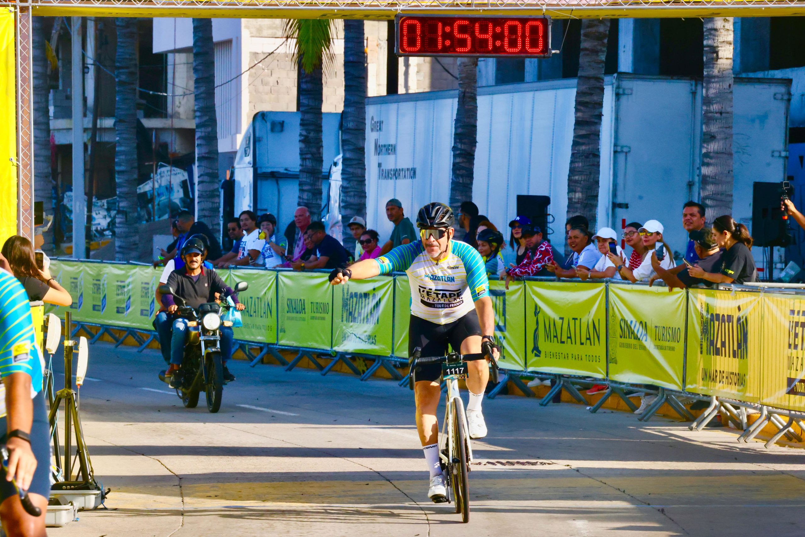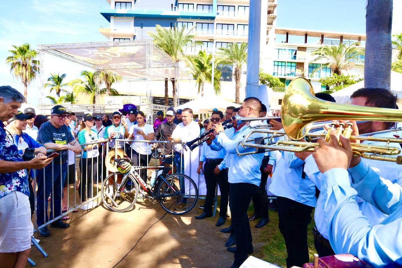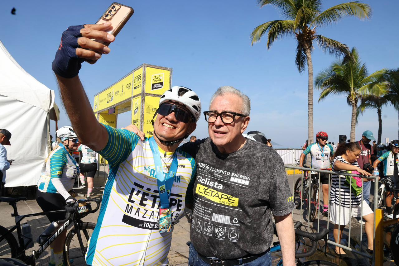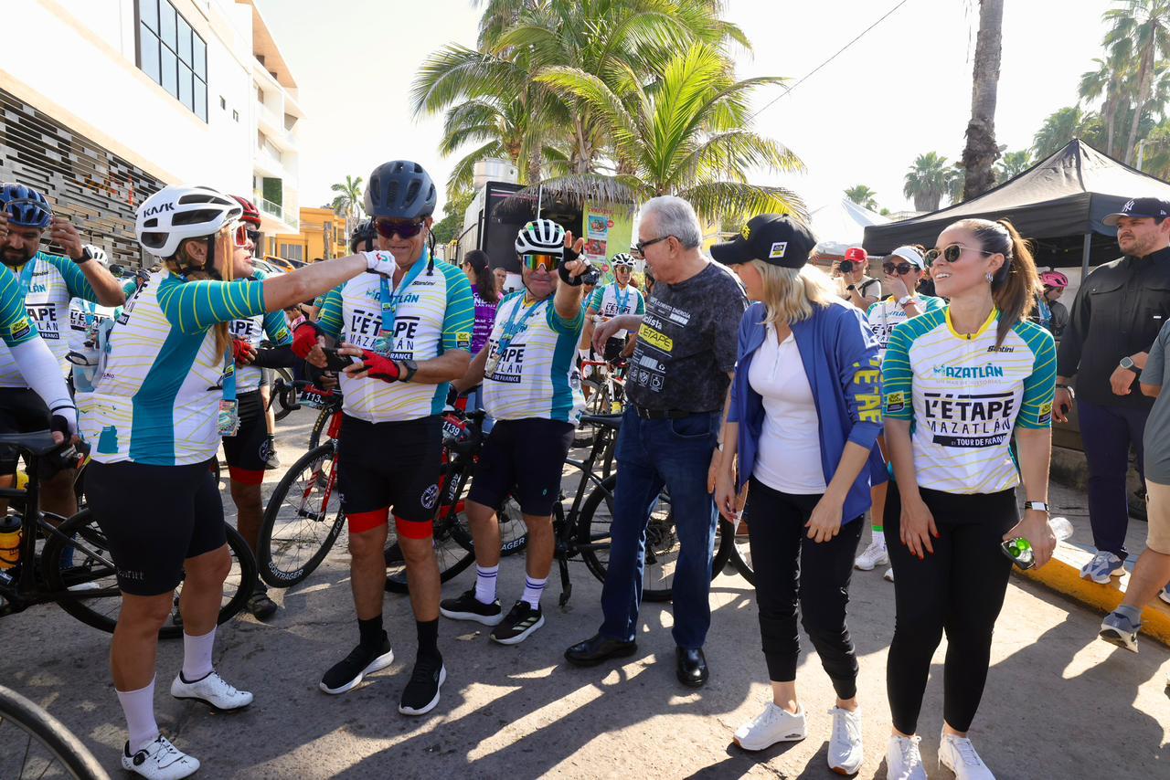 Mazatlán, Sinaloa. – El gobernador Rubén Rocha Moya, acompañado de Mireya Sosa, secretaria de Turismo y Estrella Palacios alcaldesa de Mazatlán, encabezó la premiación de los primeros lugares de las rutas Larga y Corta de L´Étape Mazatlán by Tour de France, celebrada este domingo en el puerto.