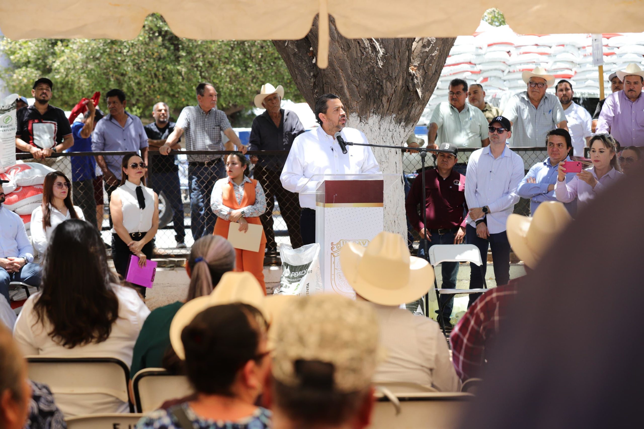 Guasave, Sinaloa. – Acompañado de la Presidenta Municipal de Guasave, Cecilia Ramírez Montoya y funcionarios de la SADER, el Secretario de Agricultura y Ganadería de Sinaloa, Ismael Bello Esquivel encabezó la entrega del Programa de Fertilizantes para el Bienestar 2025, que en la entidad beneficiará a 53 mil productores, con una inversión de mil 682 millones de pesos.