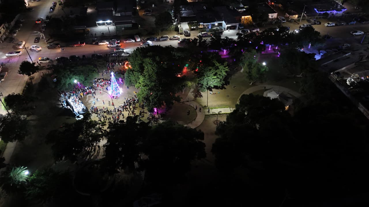 Juan José Ríos, Sinaloa. – El H. Ayuntamiento de Juan José Ríos de la mano de todas las direcciones que conforman la administración municipal llevaron a cabo el tradicional encendido de Pino Navideño en el Parque San Francisco de la cabecera municipal.