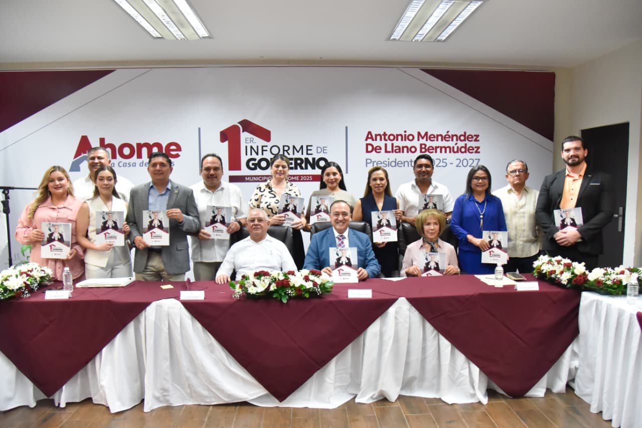 Los Mochis, Ahome, Sinaloa. – Con un mensaje de agradecimiento y compromiso al Pueblo de Ahome y al H. Cabildo del Ayuntamiento, el Presidente Municipal, Antonio Menéndez De Llano Bermúdez, entregó y presentó el Primer Informe de Gobierno de la Administración 2024-2027, en sesión ordinaria, y emitió un mensaje en donde dio detalle de parte de los logros y alcances en este primer año 2025.