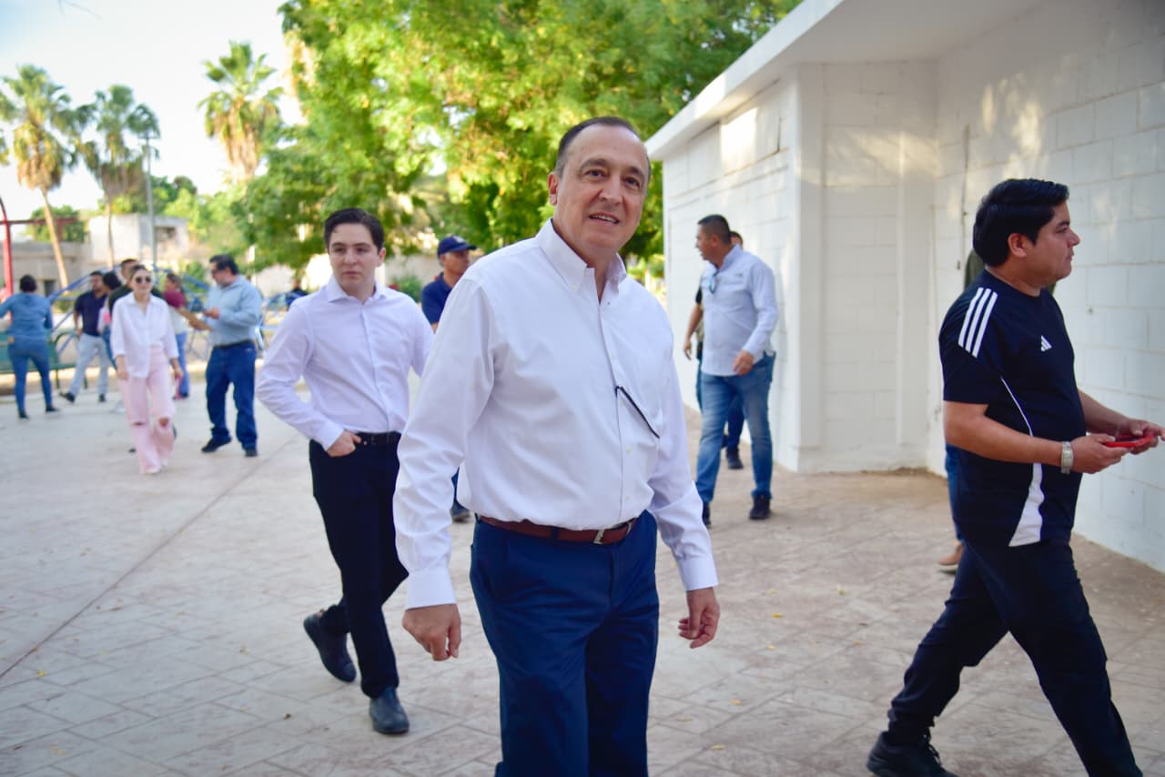 Villa de Ahome, Ahome, Sinaloa. –El Presidente Municipal Antonio Menéndez De Llano Bermúdez acudió a este pueblo señorial para supervisar los trabajos de las redes de alumbrado público y rehabilitación en el Parque Jessie Maxwell, así como el alumbrado en el polideportivo de esa cabecera de sindicatura, donde se hace una inversión aproximada a los 900 mil pesos en ambas obras.