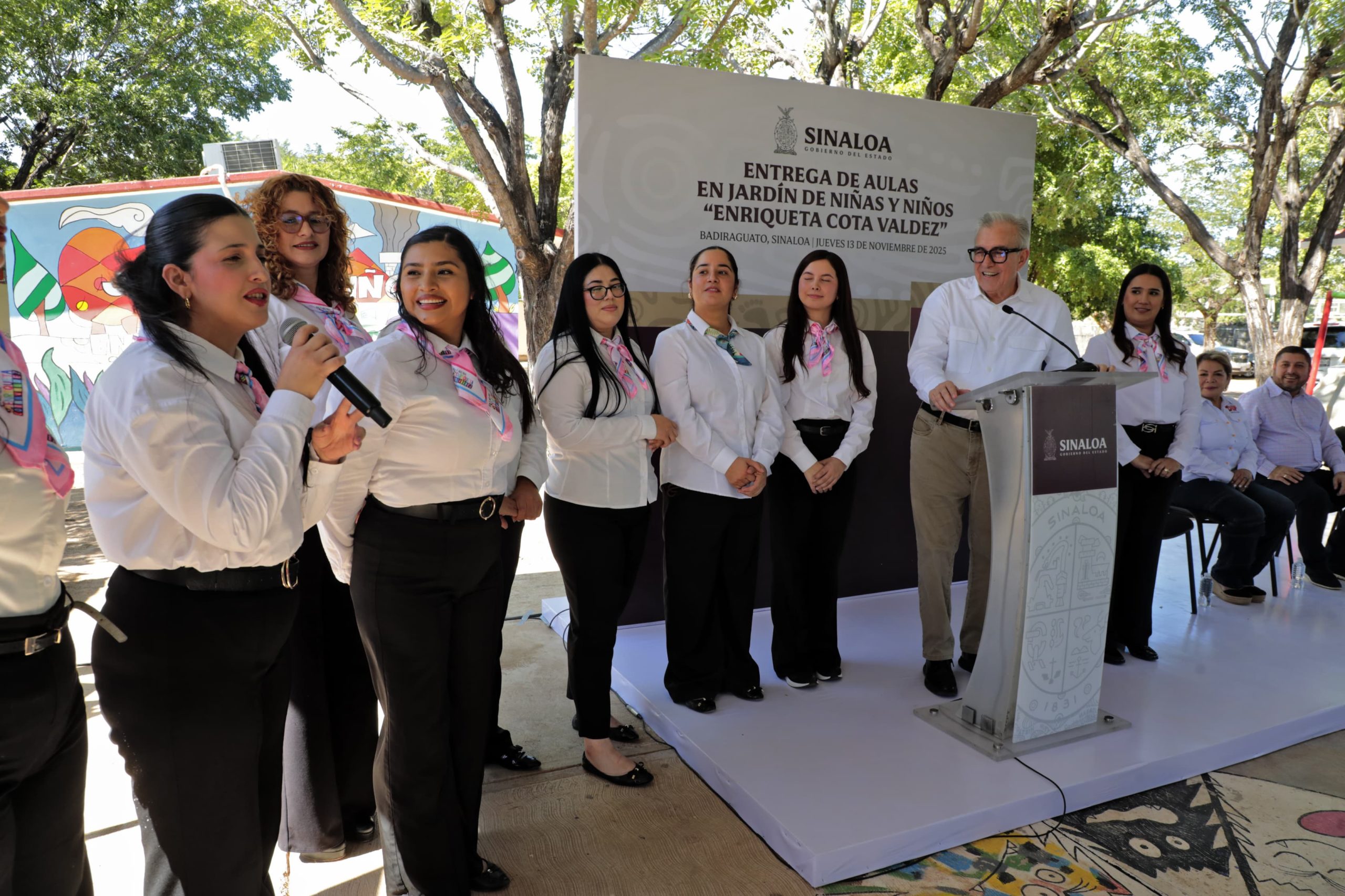 Nos da gusto entregar esta escuela, que en realidad no está rehabilitada, porque las aulas que había se tumbaron y es importante que ahora tienen aulas nuevas, que están en condiciones de ser habitadas en el proceso educativo por las niñas y los niños de este jardín de niños”, dijo el gobernador Rocha.