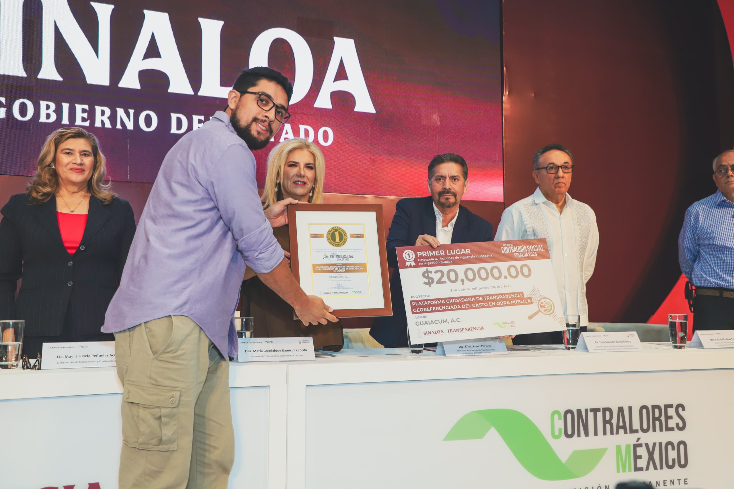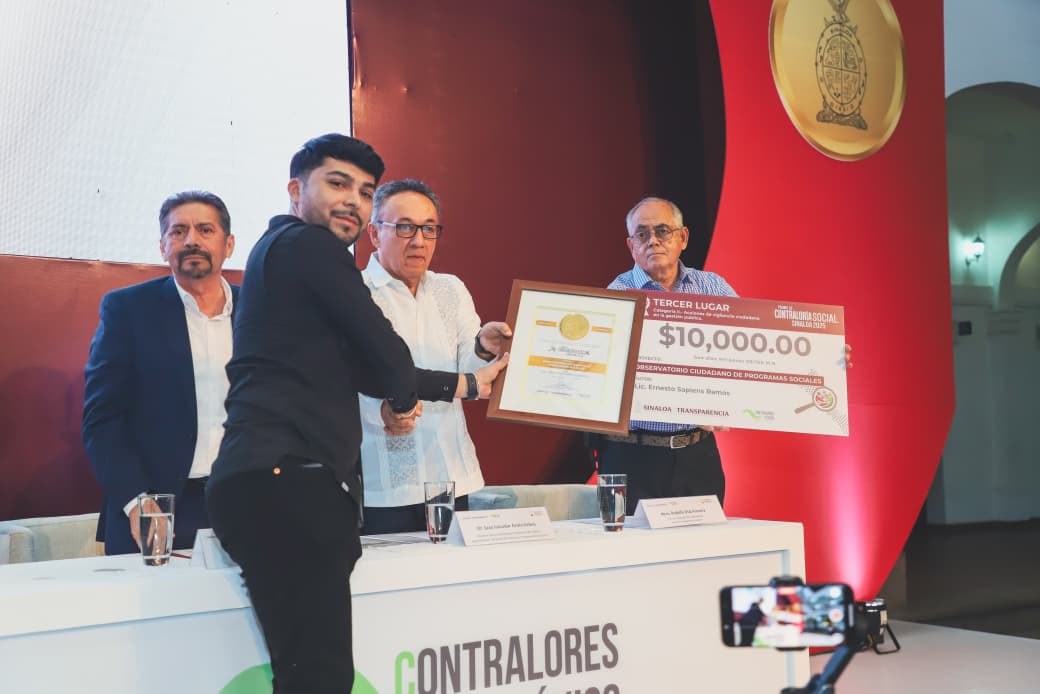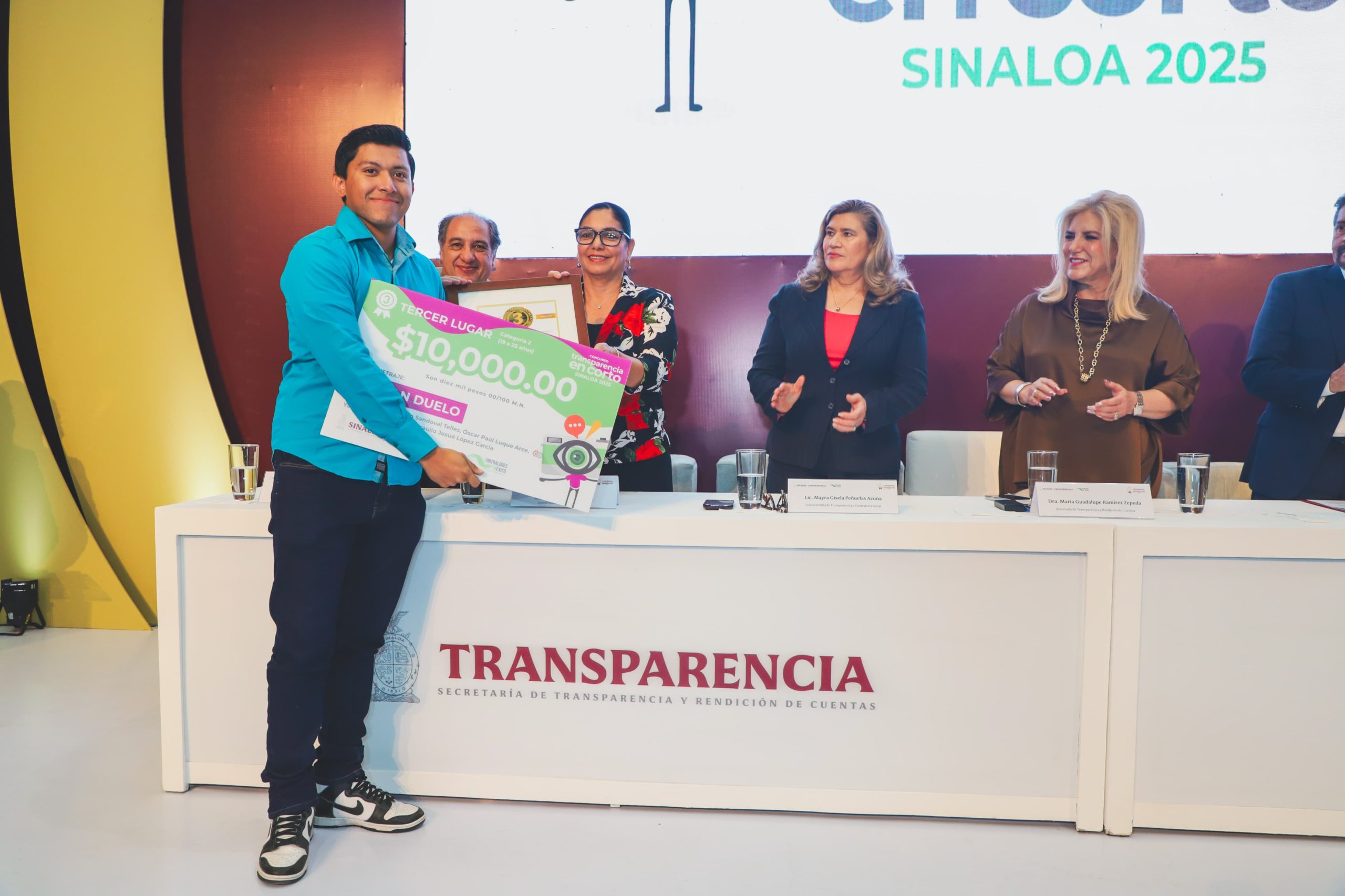 Culiacán, Sinaloa. – Con el propósito de reconocer el esfuerzo ciudadano que vigila y evalúa la administración pública, además de fomentar la participación de los jóvenes que a través de la filmación de cortometrajes, contribuye en la construcción de una sociedad honesta, íntegra y solidaria, el Gobierno del Estado entregó constancias e incentivos económicos a los ganadores del Premio de Contraloría Social y Concurso Transparencia en Corto, Sinaloa 2025.