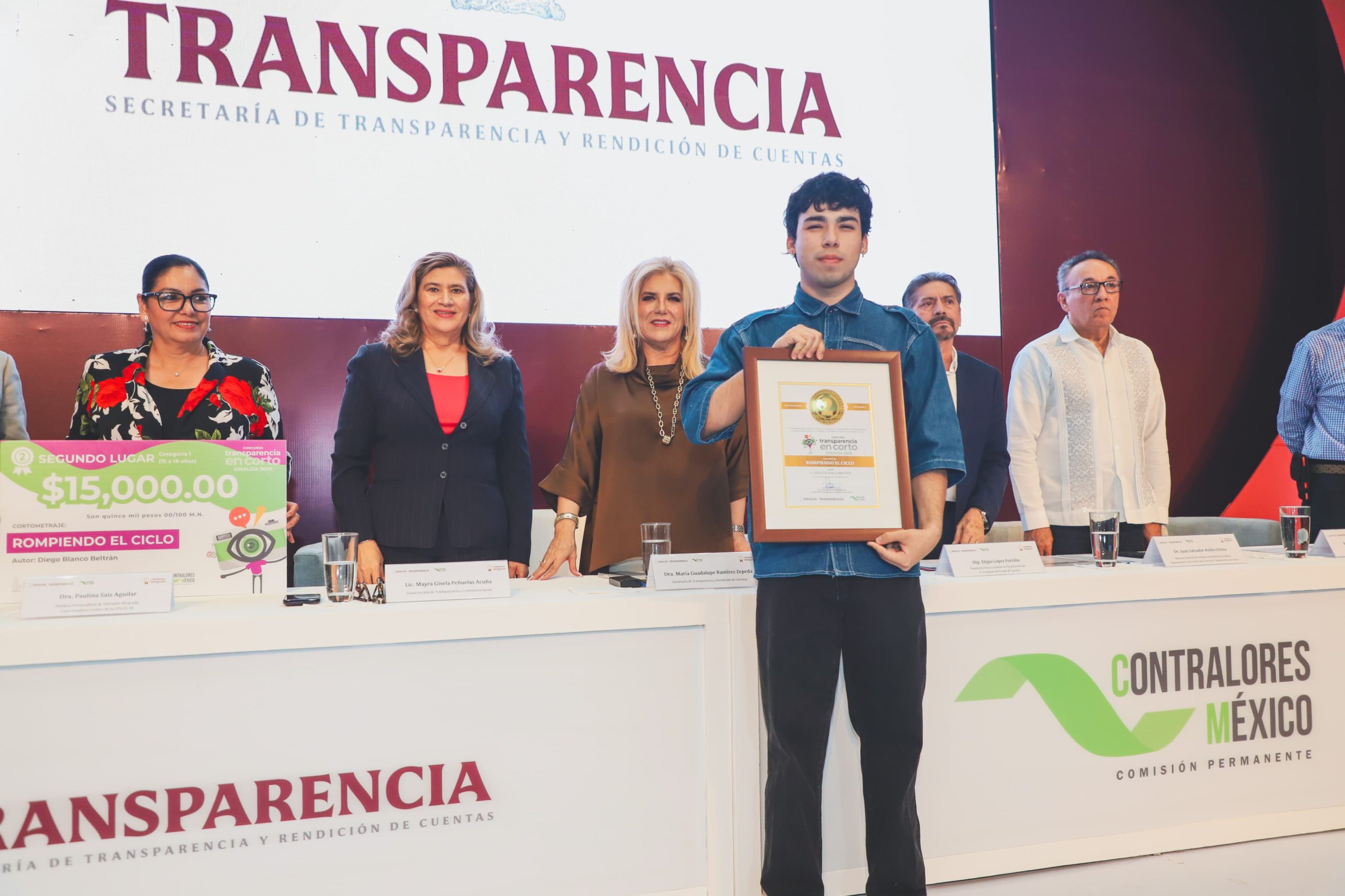 Los estímulos económicos entregados por la Secretaria de Transparencia y Rendición de Cuentas, María Guadalupe Ramírez Zepeda, a los realizadores de los proyectos y cortometrajes ganadores del primero, segundo y tercer lugar, fueron de 20 mil, 15 mil y 10 mil pesos, respectivamente.