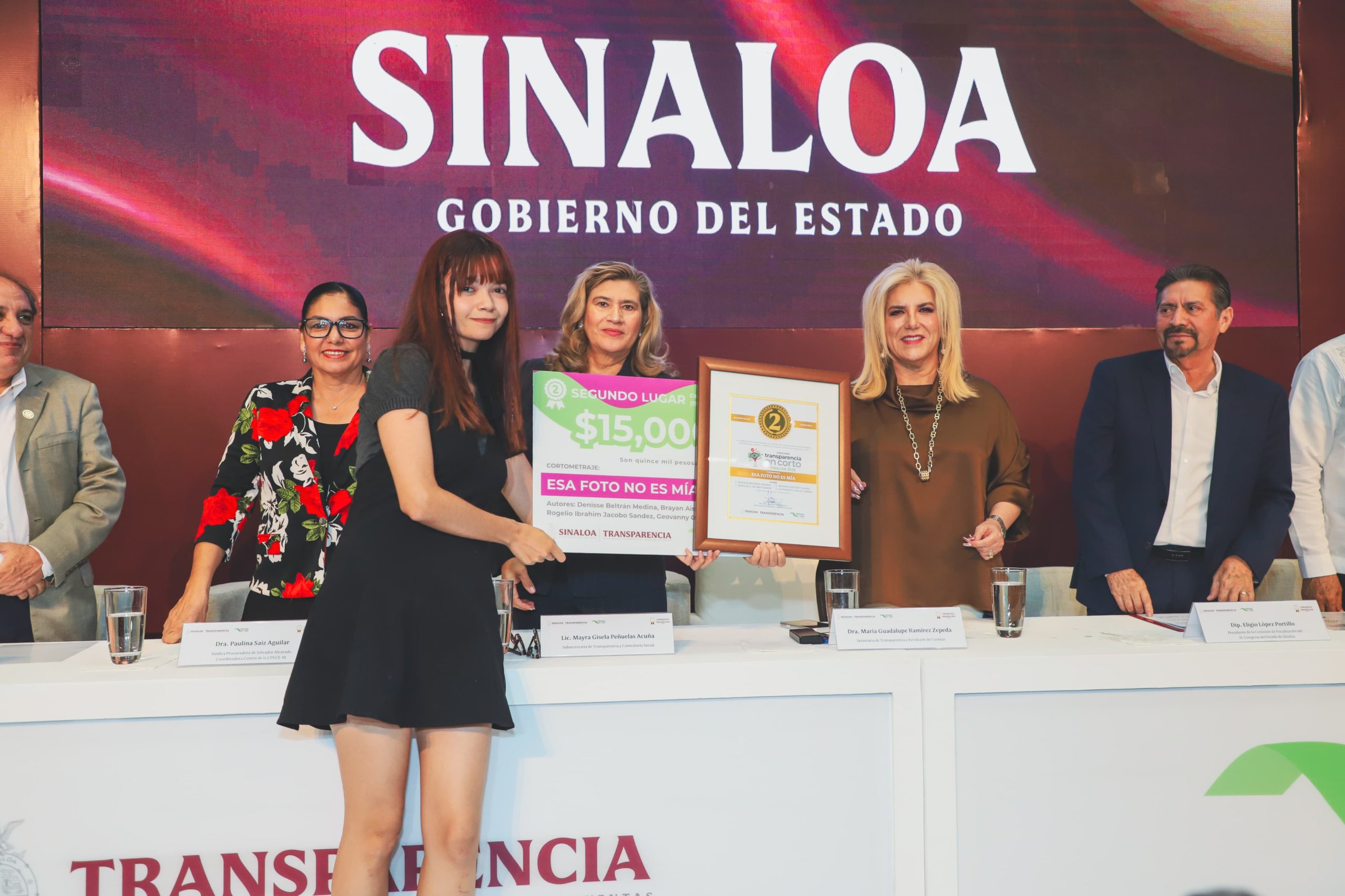 Dentro del Concurso Transparencia en Corto Sinaloa 2025, con la temática Mecanismos de impulso a la transparencia para combatir la desinformación, en la categoría de 15 a 18 años, se premió a: