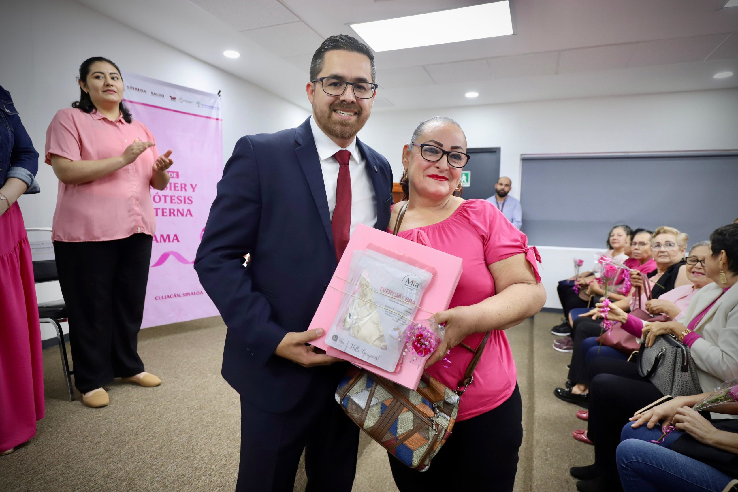 Culiacán, Sinaloa. – La Secretaría de Salud, a través de la Beneficencia Pública del Estado y en coordinación con el Voluntariado Estatal, realizó este miércoles la entrega de 40 prótesis externas de mama y 78 brasieres porta prótesis a 40 mujeres que actualmente se encuentran en tratamiento o que han superado el cáncer de mama.