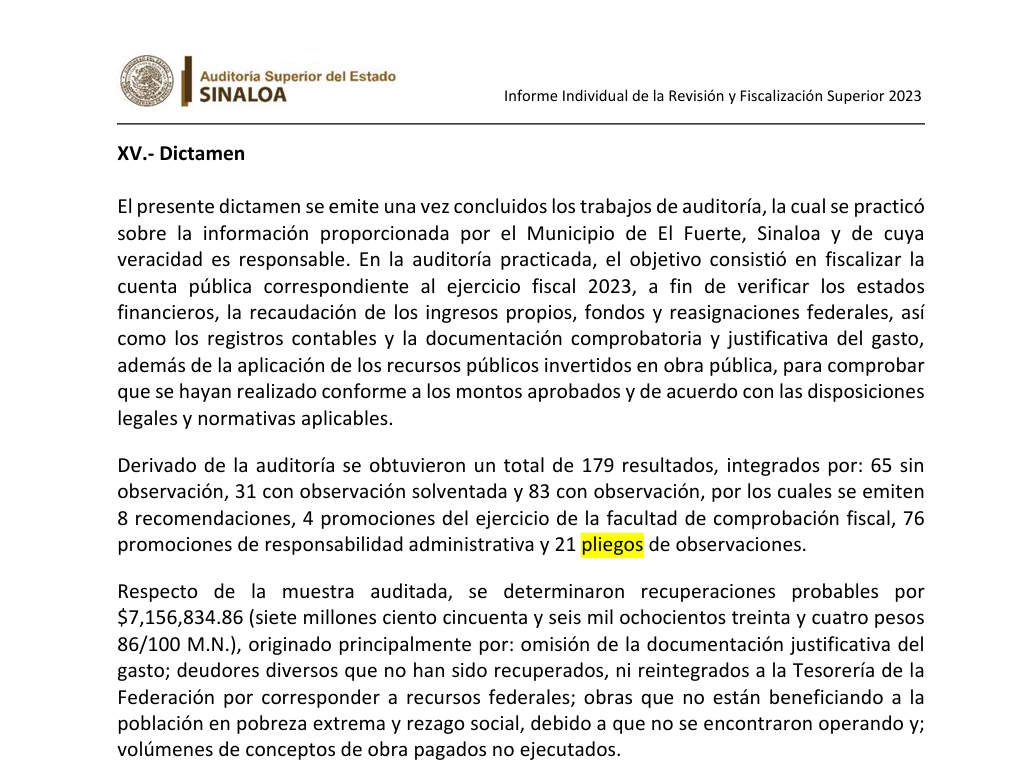 Los números son claros. La Auditoría Superior del Estado observó como probables daños al erario público en 2021 alrededor de 39 millones de pesos con Nubia Ramos, en 2022 más de 18 millones de pesos ya con Leyva Ortega y en la del 2023 más de 7 millones de pesos. La del 2024 puede dar la sorpresa.