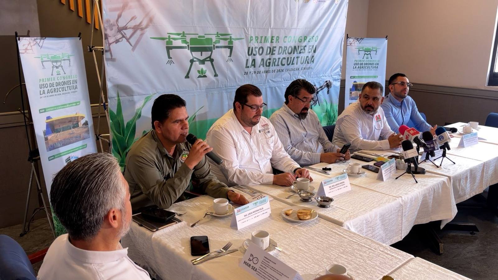 Durante la rueda de prensa, el presidente del Comité Estatal de Sanidad Vegetal del Estado de Sinaloa (CESAVESIN), Leonel Murillo Cárdenas, destacó la relevancia de este congreso al tratarse de un espacio inédito enfocado en la capacitación y el uso eficiente de herramientas tecnológicas en el campo. “Es un evento sin precedentes a nivel nacional; buscamos que los productores y técnicos conozcan el potencial de los drones para mejorar la productividad y la rentabilidad en la agricultura”, expresó.