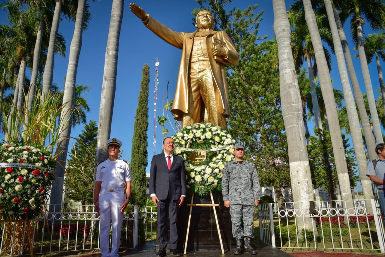 Autoridades y ciudadanos conmemoran en el 88 Aniversario de la Expropiación Petrolera. Presiden guardia de honor el Secretario del Ayuntamiento Cutberto Ríos y la Presidenta del Sistema DIF Ahome, Marissa Menéndez de Llano Chávez.