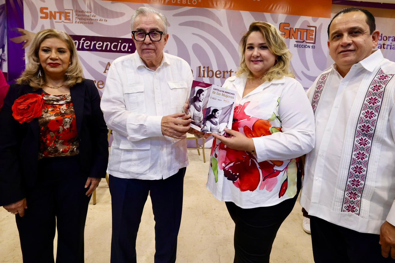 Ricardo Madrid Uriarte, secretario del SNTE 53, señaló que en la Cartilla de los Derechos de las Mujeres está escrita la lucha de muchas generaciones de mujeres que con valentía y sacrificio hoy hablan de igualdad, participación y una vida libre de violencia y es tarea de la sociedad convertirlos en una realidad diaria haciendo valer las garantías.