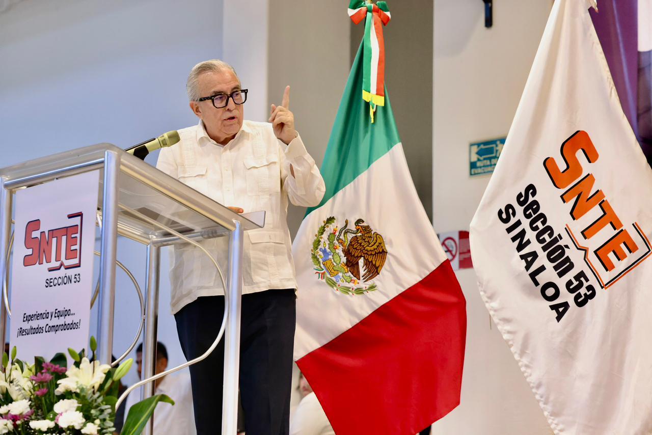 Acompañaron al Gobernador Rocha Moya, Gloria Himelda Félix Niebla, secretaria de Educación Pública y Cultura; Teresa Guerra Ochoa, presidenta de la Junta de Coordinación Política del Congreso del Estado; Juan Ramón Sánchez, representante de la Comisión Estatal de Derechos Humanos; Santiago Inzunza Cazares, director de COBAES; así como maestras, maestros, jefes de sector, supervisores, directores, delegados seccionales, personal de apoyo, además de padres y madres de familia.