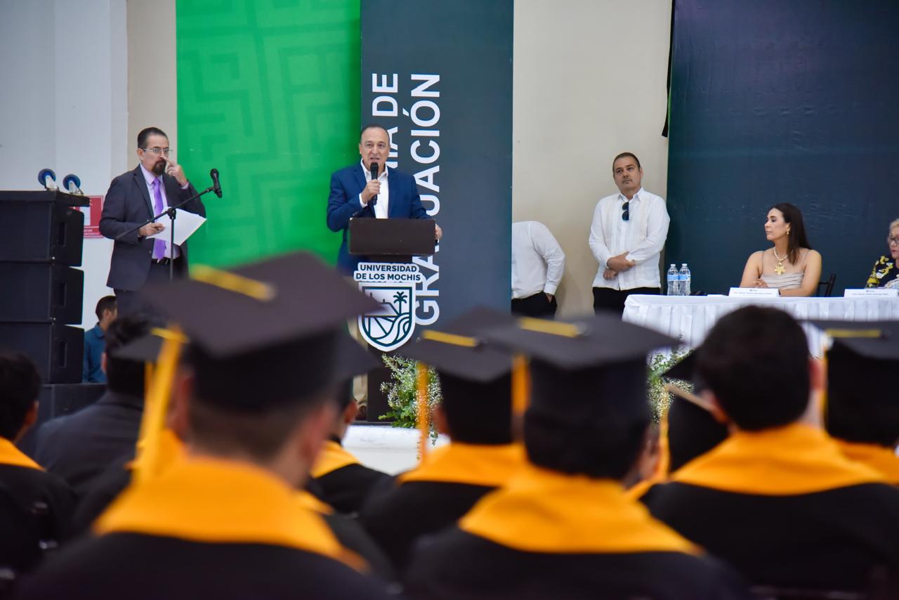 *El Presidente Municipal de Ahome compartió un emotivo mensaje con los 374 egresados de la generación 2021-2025, y reconoció el esfuerzo de sus familias, docentes y el compromiso que implica culminar una carrera universitaria