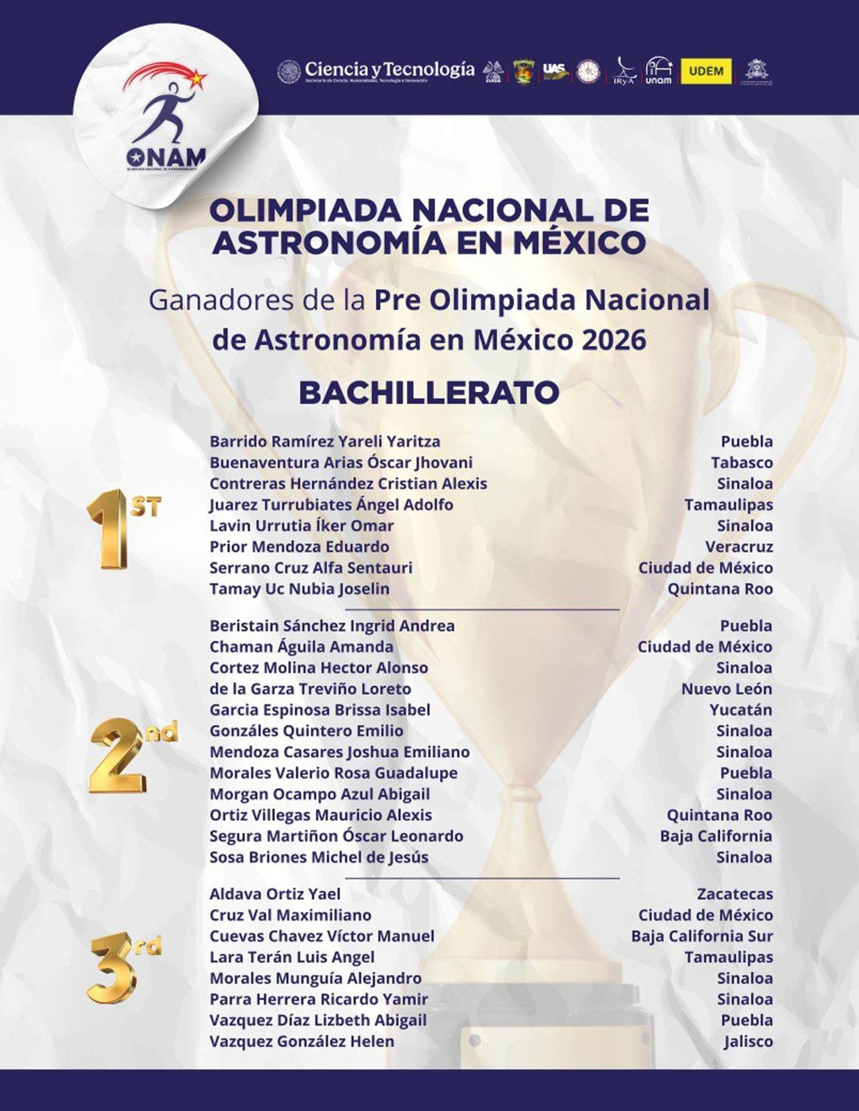 Asimismo, destacó que este ejercicio previo a la olimpiada —a celebrarse en otoño de 2026— registró una amplia convocatoria nacional, donde los participantes demostraron una sólida preparación en temas como astrofísica, mecánica celeste y observación astronómica.