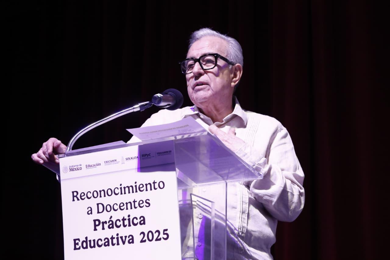 Culiacán, Sinaloa. – El gobernador Rubén Rocha Moya hizo un exhorto a las maestras y maestros a continuar capacitándose para mejorar la calidad de la educación de Sinaloa, y para ello están los programas que se han implementado en su administración, como el denominado Práctica Educativa 2025, dirigido a personal docente del nivel básico y medio superior, y el Diplomado en Matemáticas y Ciencias.
