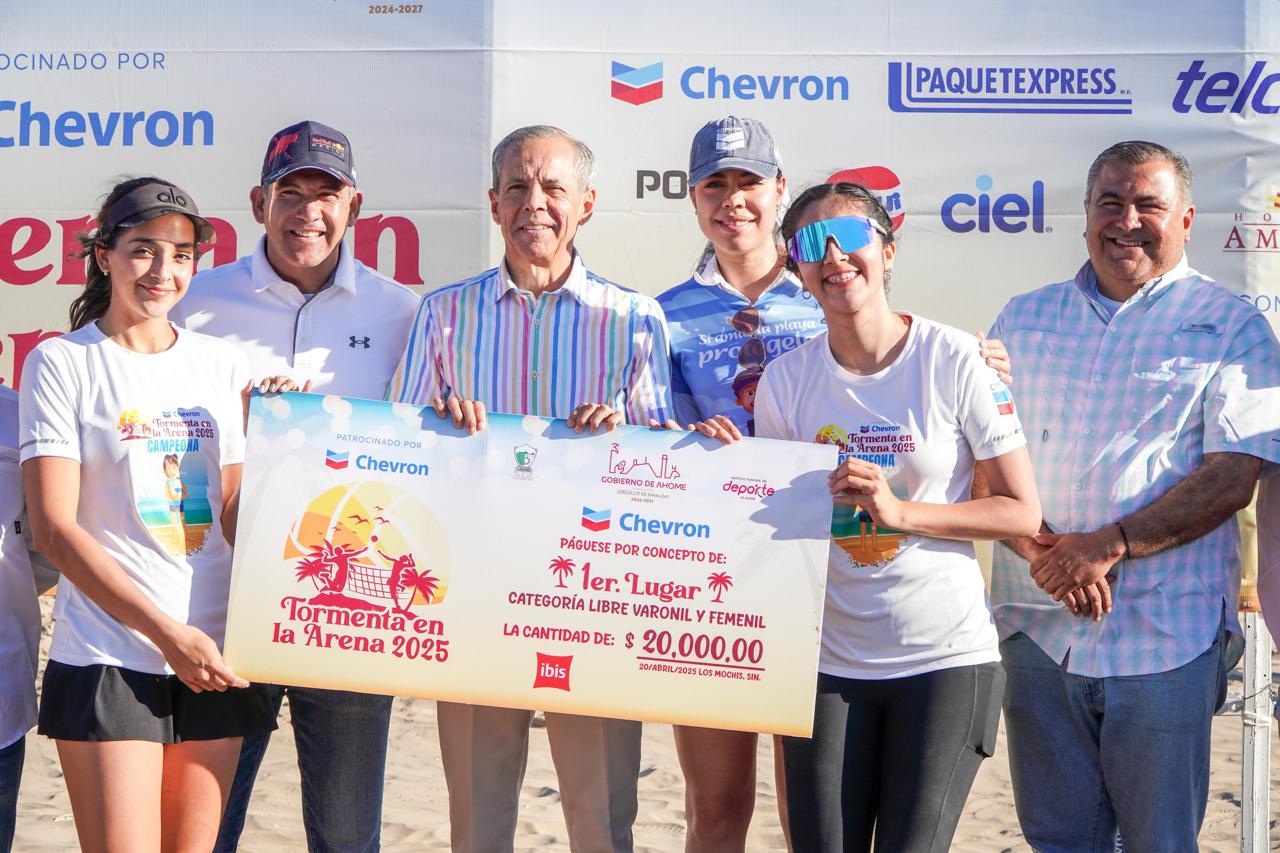 Los Mochis, Ahome, Sinaloa. – Con la participación de 36 equipos provenientes de distintos puntos del noroeste del país, concluyó con gran entusiasmo y ambiente familiar el torneo de Voleibol Playero “Tormenta en la Arena 2025”, celebrado en la playa de El Maviri. El evento destacó por su nivel competitivo, su organización y una atractiva bolsa de premiación de 100 mil pesos, distribuidos entre las ramas libre varonil, libre femenil, juvenil varonil y juvenil femenil.