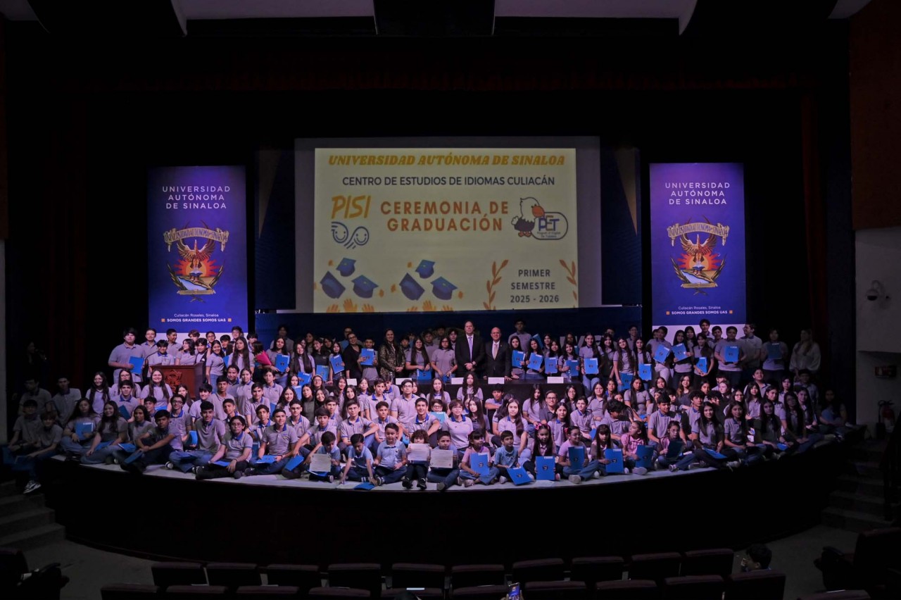 La Universidad Autónoma de Sinaloa (UAS) celebró la culminación de estudios de 165 estudiantes del Programa Infantil Sabatino de Inglés (PISI) y de 30 niñas y niños del Program of English for Toddlers (PET), mediante una ceremonia conjunta de graduación realizada en las instalaciones de la Torre Académica Culiacán.