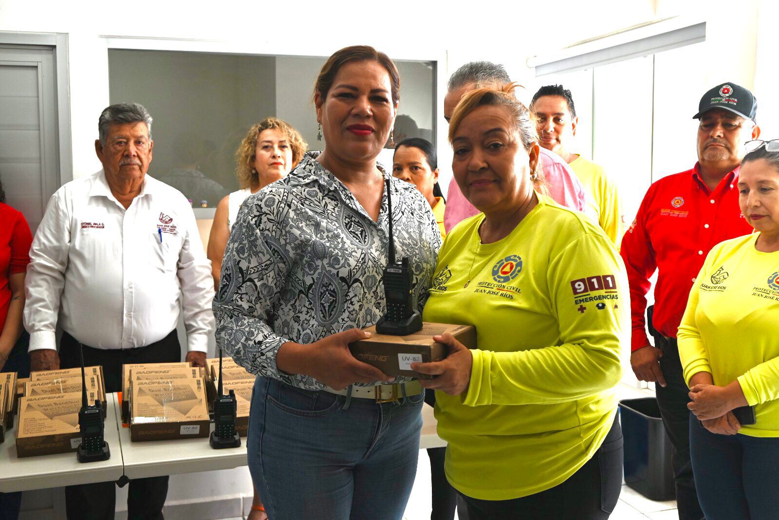 Juan José Ríos, Sinaloa. – Cumpliendo con el compromiso de fortalecer la capacidad de respuesta ante situaciones de emergencia, la Alcaldesa Evangelina Llanes Carreón realizó la entrega de radios de comunicación a la Dirección de Protección Civil, con el objetivo de mejorar la coordinación operativa y la atención oportuna a la ciudadanía en casos de riesgo.
