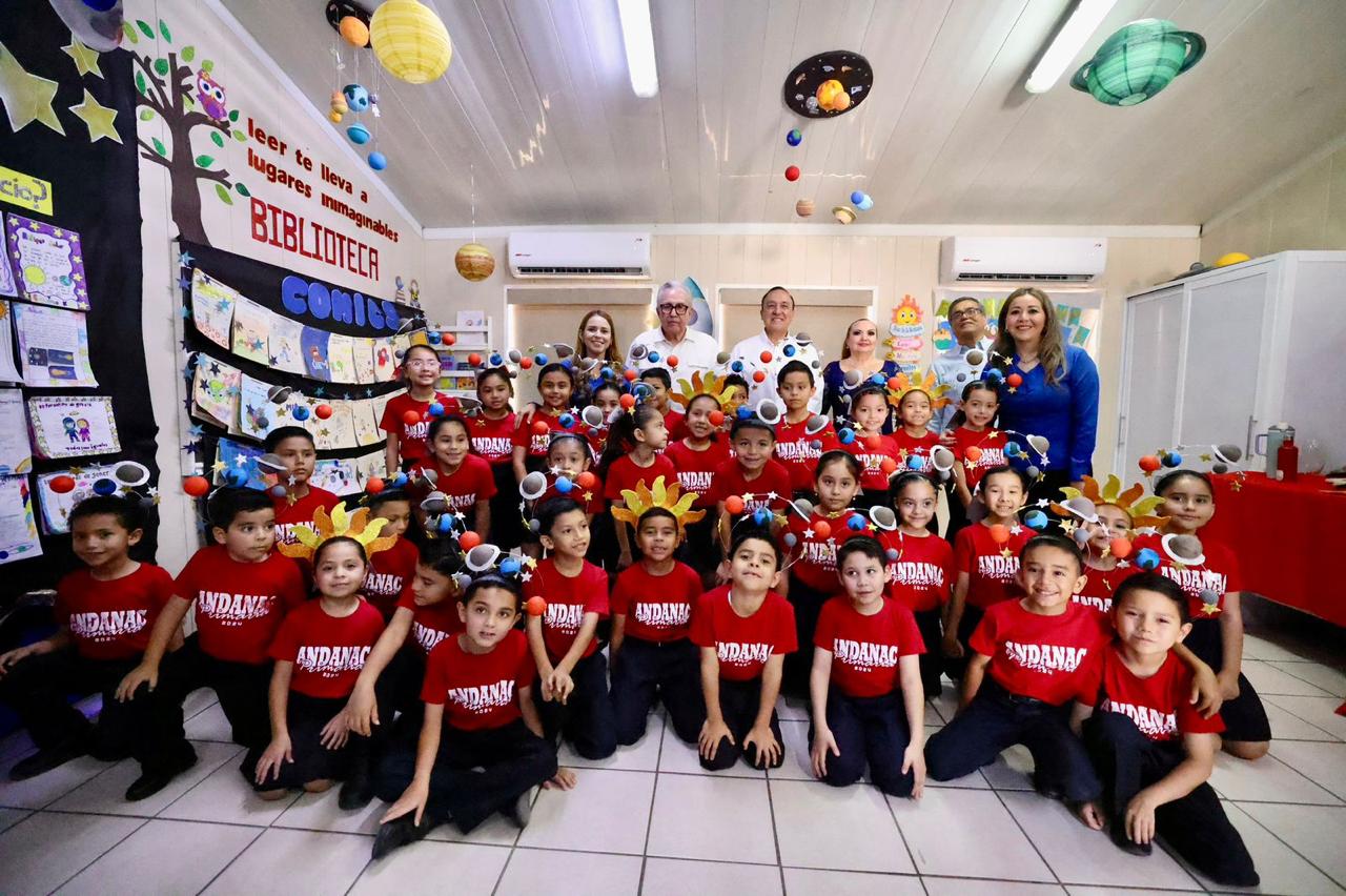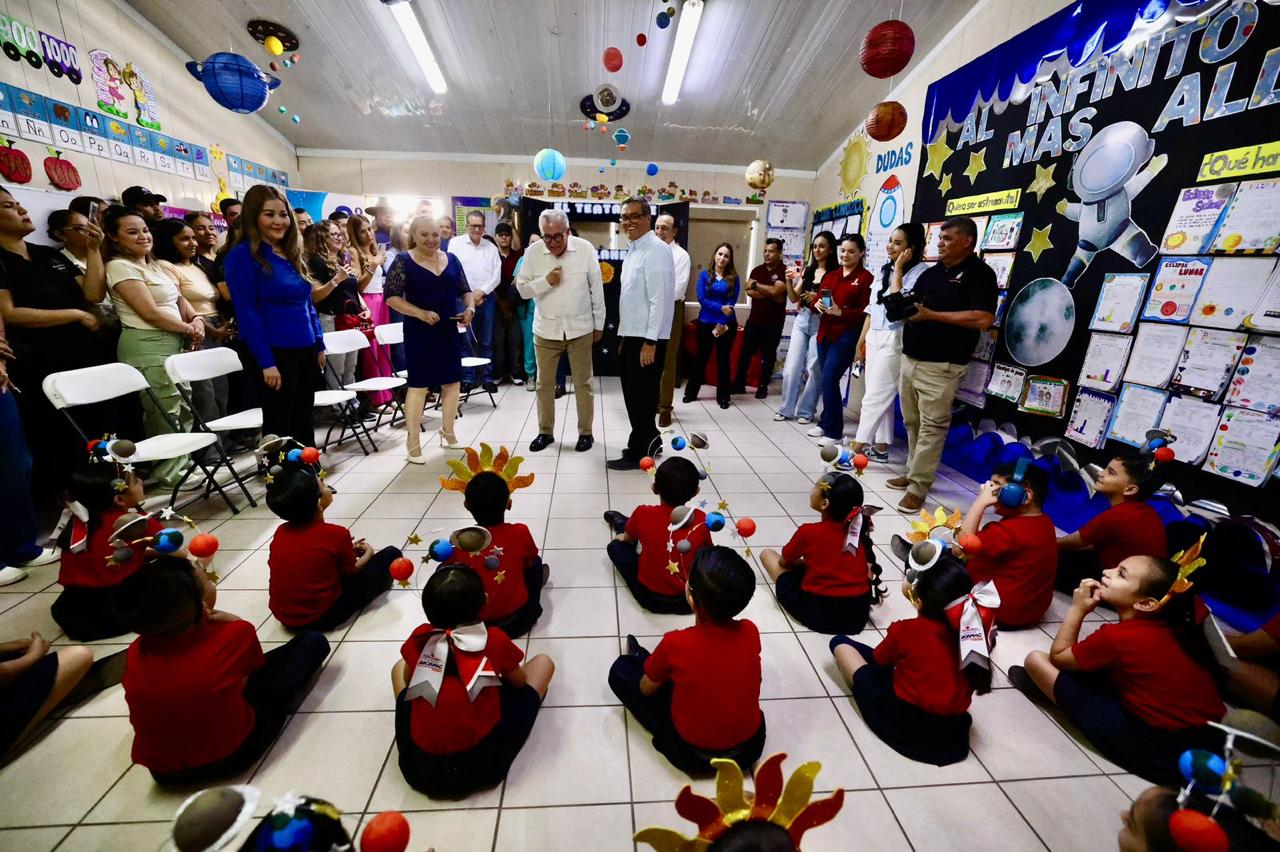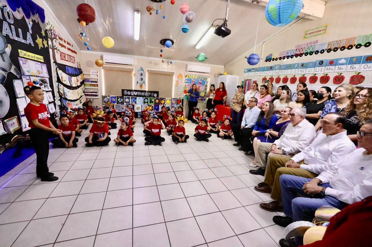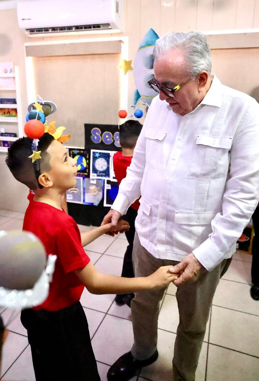 El gobernador Rocha inició su gira de trabajo por el municipio de Ahome, con la visita a la Escuela Primaria Fundación ANDANAC NISSAN, donde primeramente se reunió con las niñas y niños y sus maestros, para escuchar también sus necesidades, y en respuesta a ello, giró instrucciones al director del ISIFE, Hugo Echave Meneses, quien lo acompañó, para dotar de mobiliario al plantel y la instalación también de unos juegos infantiles, lo cual fue lo que le solicitaron los niños en sus aulas.