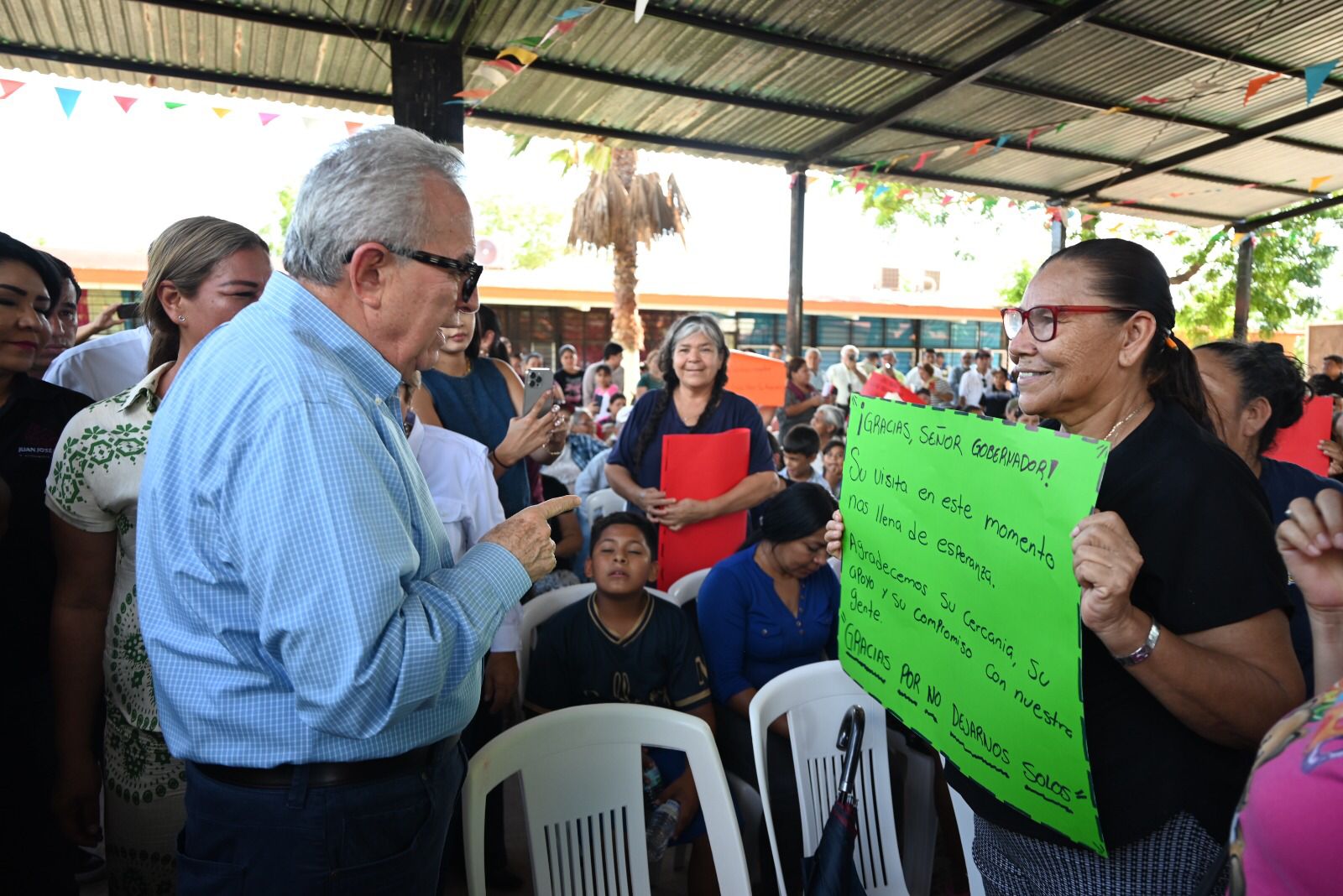 Juan José Ríos, Sinaloa. – Con una cálida recepción por parte de los habitantes, el gobernador Rubén Rocha Moya visitó el municipio de Juan José Ríos para entregar apoyos a las familias más afectadas por el Huracán Lorena y las fuertes lluvias que trajo.