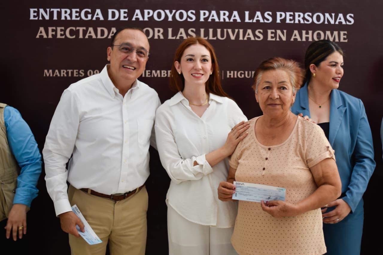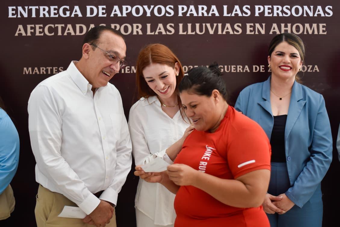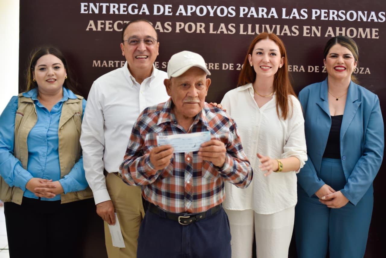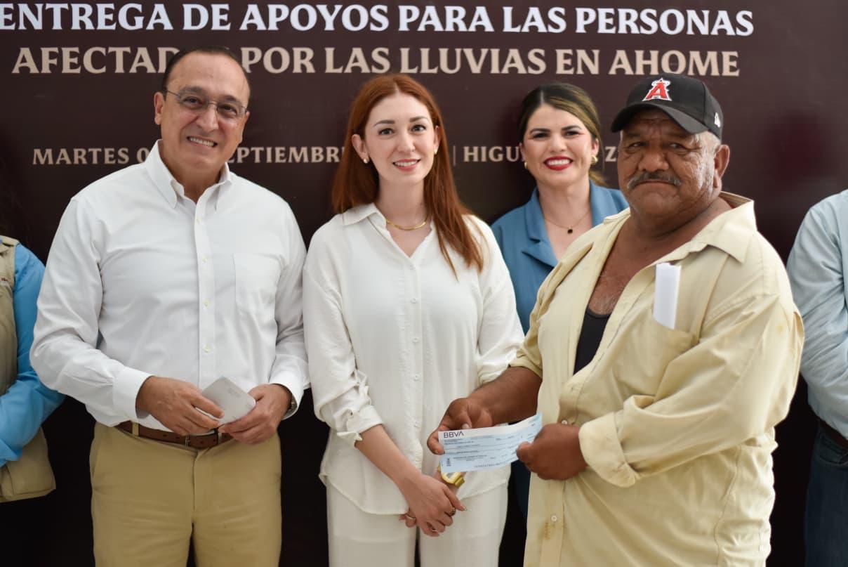 Higuera de Zaragoza, Ahome, Sinaloa. – Tal como fue el compromiso del Gobernador y el Presidente, de apoyar de manera pronta y oportuna a afectados por la tormenta Lorena, más de 150 familias ahomenses recibieron cheque económico para afrontar la situación.