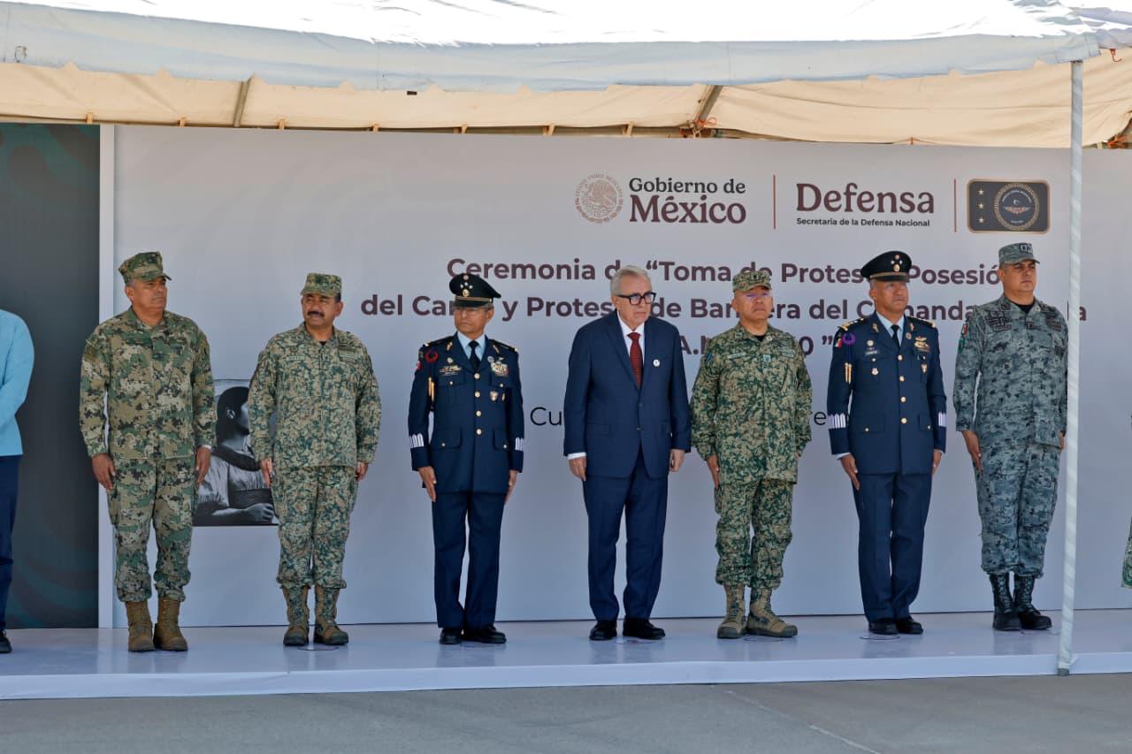 La toma de protesta del nuevo comandante estuvo a cargo del general de División Piloto Aviador, Carlos de Jesús Gracia Ríos, comandante de la Región Aérea Militar del Noroeste, para dar cumplimiento así al mandato de la presidenta de la República y comandanta suprema de las Fuerzas Armadas, Claudia Sheimbuam Pardo.