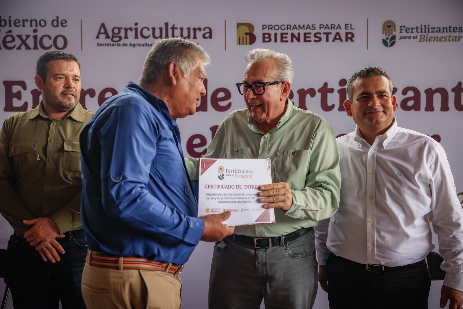 *El programa contempla la entrega de más de 105 mil toneladas de fertilizante en Sinaloa, beneficiando a 55 mil 632 productores de riego y temporal en el estado
