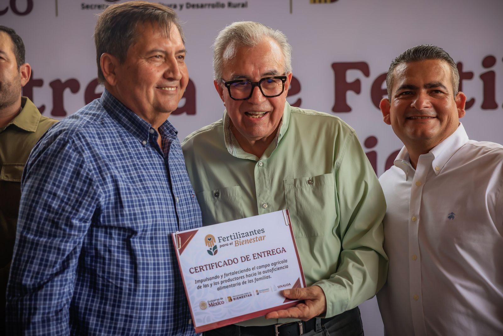 Por su parte, Claudio Beltrán Ramírez, director general de Fertilizantes para el Bienestar del gobierno federal, reconoció el impulso y gestión de este programa por parte del gobernador Rocha, para apoyar al campo sinaloense, afirmando que Sinaloa es tierra de gente que trabaja y es el granero de México.