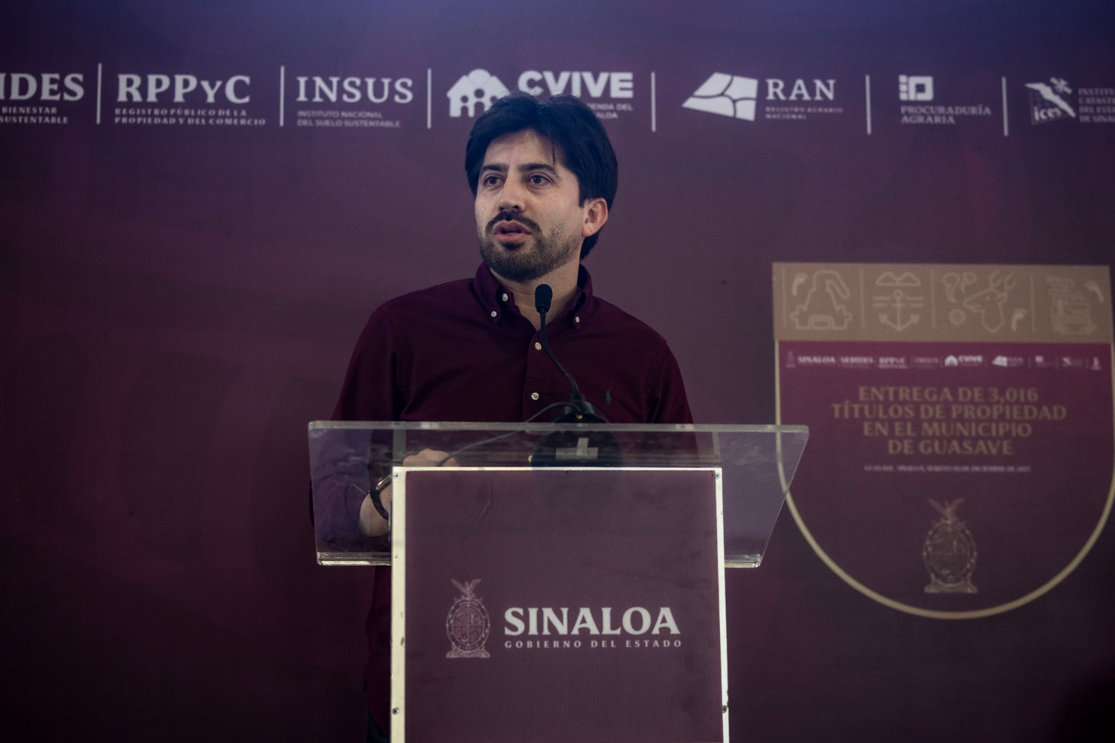 Me da mucho gusto estar hoy aquí acompañando al gobernador del estado, al doctor Rubén Rocha Moya, en un evento que tiene un profundo significado para las familias de Guasave, la entrega de 3 mil 16 nuevos títulos de propiedad”, dijo.