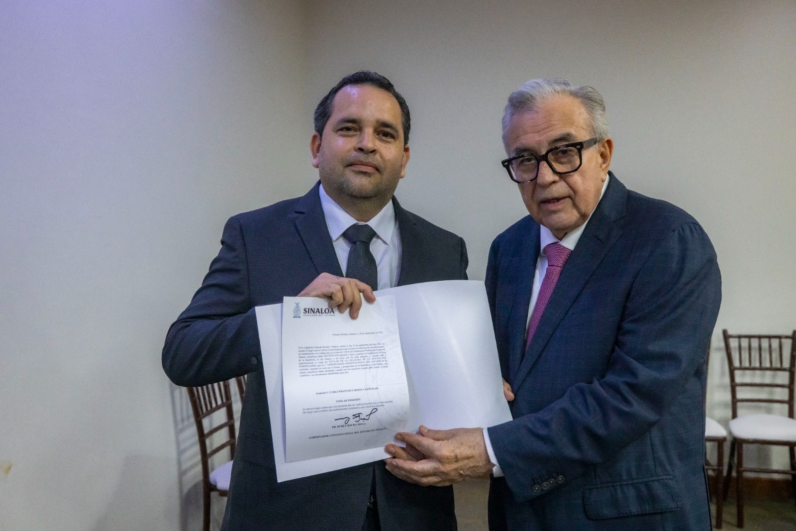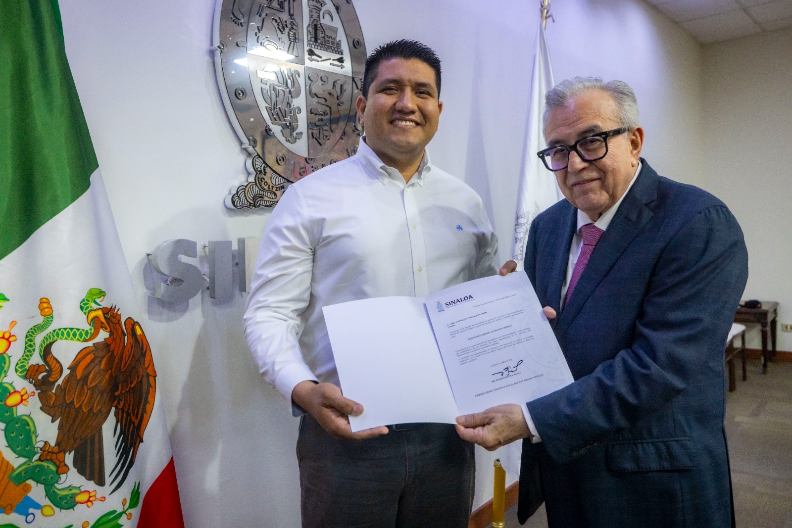 El gobernador Rocha también le tomó la protesta y entregó su nombramiento respectivo a Carlos Enrique González Ramos, como Subsecretario de Atención Médica, de la Secretaría de Salud, y a Cuauhtémoc Chacón Mendoza, como Coordinador de Comunicación Social.