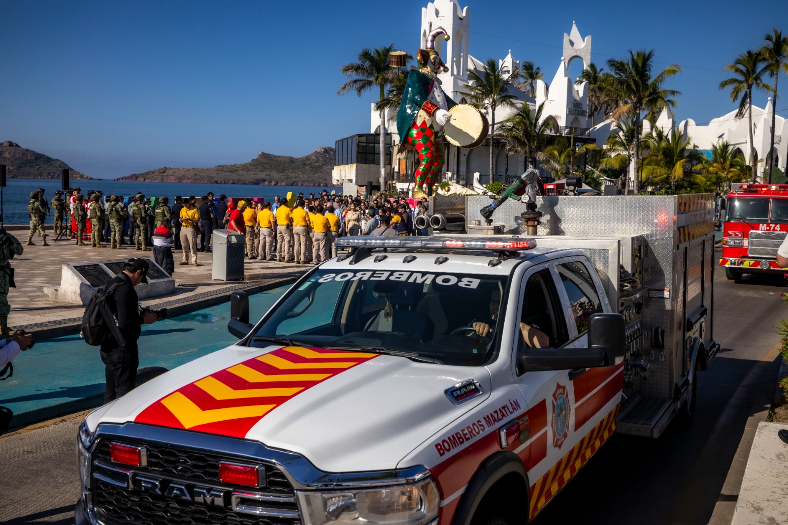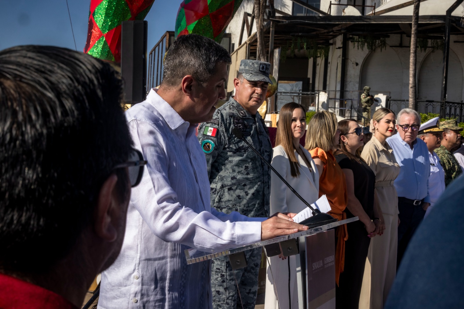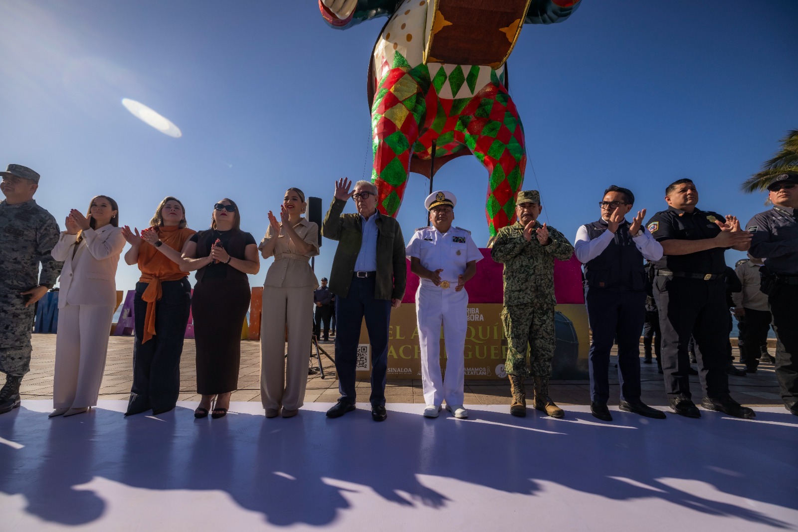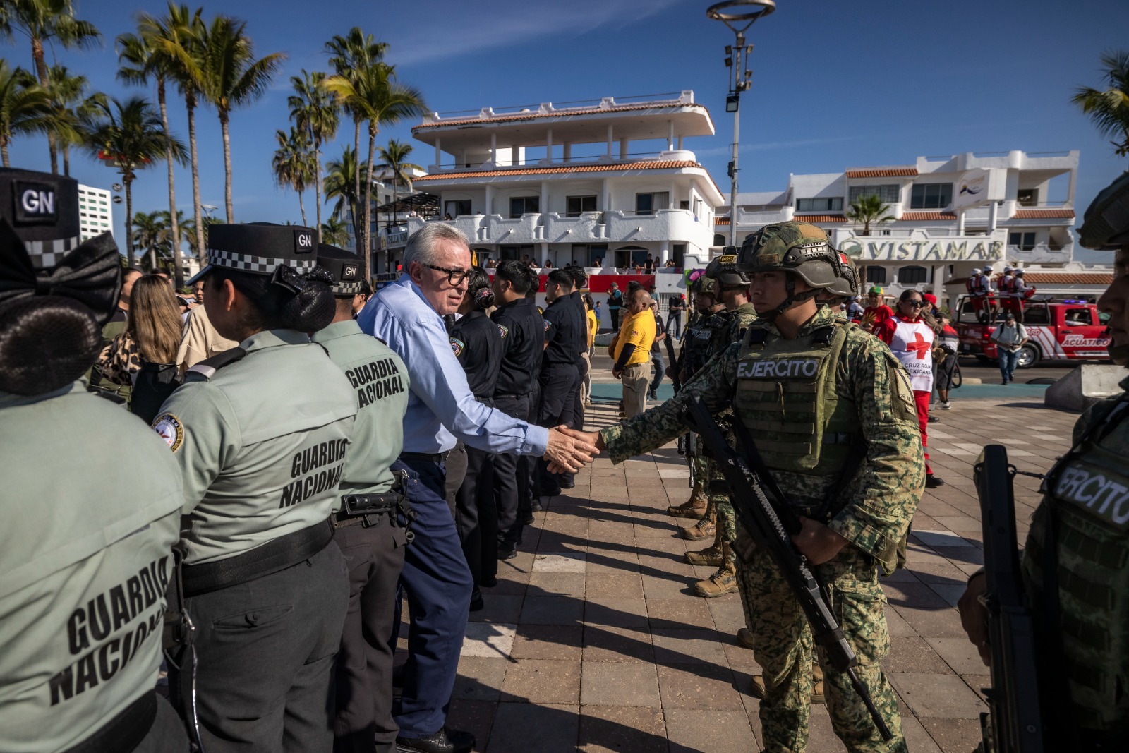Desde el parador turístico de las letras de Mazatlán, el gobernador Rocha dio el banderazo simbólico al contingente de seguridad integrado por Ejército Mexicano, Marina Armada de México, Guardia Nacional, Secretaría de Seguridad y Protección Ciudadana, todas del ámbito federal, así como a las corporaciones de seguridad estatales y locales, y cuerpos voluntarios de auxilio, como Cruz Roja, Bomberos, Rescate Acuático y Protección Civil.