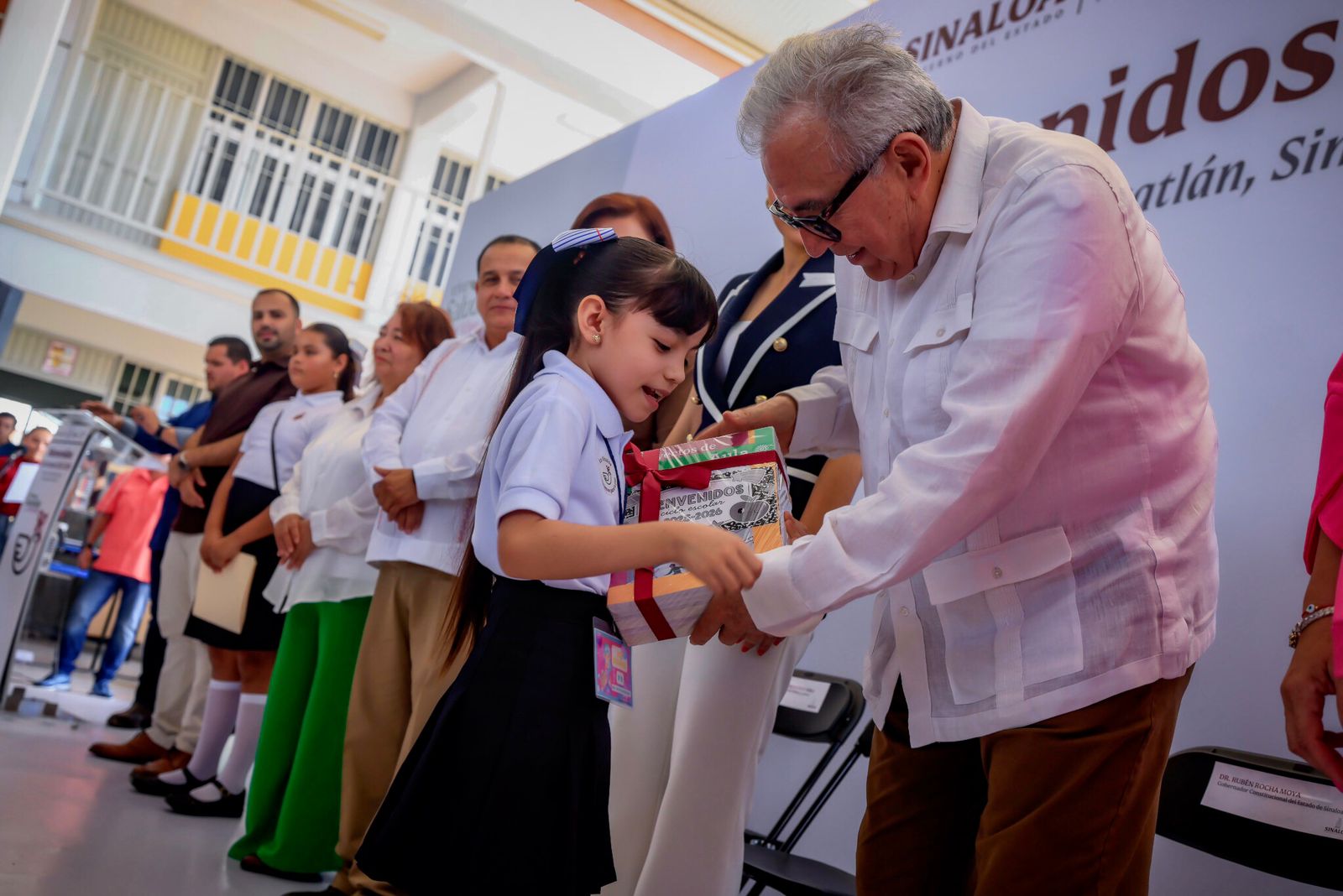 La bienvenida estuvo a cargo de la presidenta municipal de Mazatlán, Estrella Palacios Domínguez; y también acompañaron al gobernador Rocha, la presidenta del Sistema DIF Sinaloa, Eneyda Rocha Ruiz; el presidente de la Comisión de Educación del Congreso del Estado, diputado Manuel de Jesús Guerrero Verdugo; los dirigentes del SNTE, Ricardo Madrid Uriarte, de la Sección 53; y Genaro Torrecillas, de la Sección 27; y la delegada del IMSS, doctora Tania Medina.