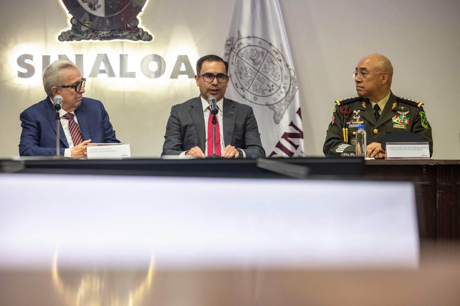 Y aquí en el estado de Sinaloa se toma como ejemplo, y hay muchas formas de comprobarlo, y los hechos son los que dan fe, dan evidencia del avance que se tiene, cada uno de nosotros desde su particular agenda aporta un capital importantísimo para el objetivo que tenemos; seguiremos trabajando hombro con hombro, codo a codo, no sólo con los integrantes de las Fuerzas Armadas, sino con todos los integrantes de la Mesa de Seguridad y del gabinete estatal, así continuaremos avanzando en el encargo que tenemos en beneficio de todas las y los sinaloenses”, dijo el general.