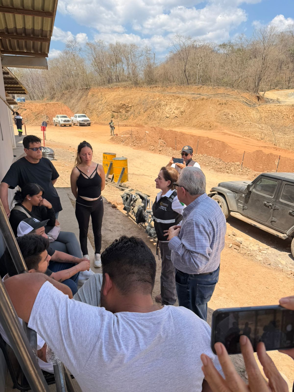 Rosario, Sinaloa.- El gobernador Rubén Rocha Moya realiza una nueva visita a la mina Santa Fe en Rosario, donde junto con Laura Velázquez, Coordinadora Nacional de Protección Civil, sostuvieron una charla con familiares de los trabajadores que aún siguen atrapados al interior de la mina, donde les reiteraron todo el apoyo y respaldo para continuar realizando los trabajos necesarios para tratar de rescatar a los tres trabajadores, además ofrecieron detalles de las maniobras que se llevan a cabo para poder llegar a los mineros.