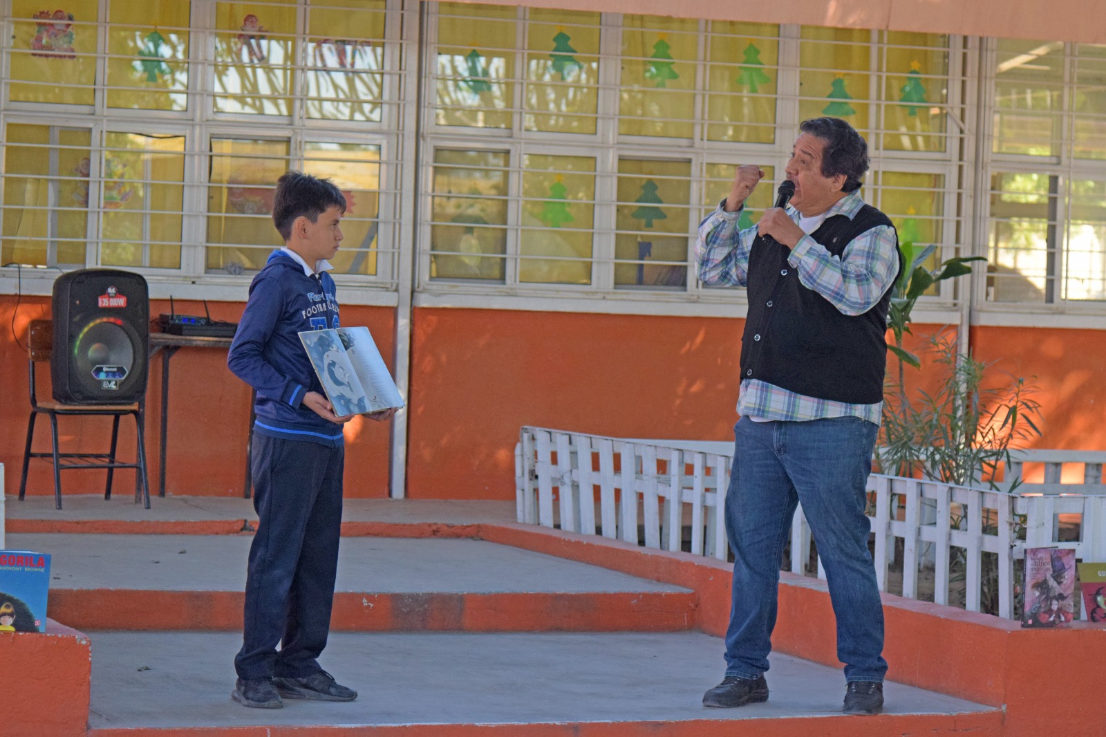 La actividad fue dirigida por el laureado escritor Alfonso Orejel, quien cautivó a los niños con su interpretación de cuentos clásicos y relatos llenos de magia, valores y enseñanzas. Su habilidad para dar vida a los personajes y transmitir emociones convirtió cada sesión en una experiencia inolvidable, donde los estudiantes participaron activamente y se dejaron llevar por el poder de la imaginación.