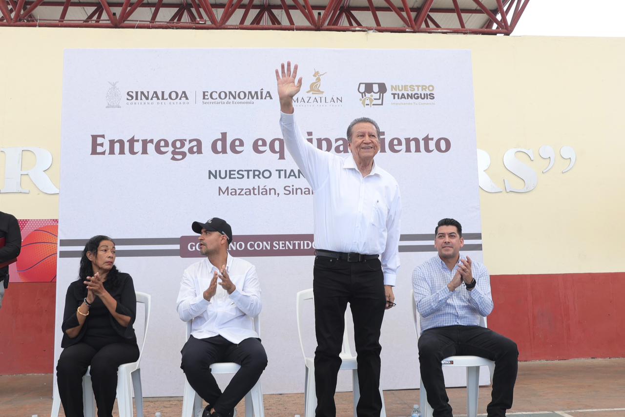 Mazatlán, Sinaloa. – Con la entrega de 450 equipos a 150 comerciantes, el Gobierno del Estado de Sinaloa llevó a cabo una nueva jornada del programa Nuestro Tianguis, reafirmando el compromiso del Gobernador Rubén Rocha Moya de impulsar la economía de quienes encuentran en el tianguis una fuente de trabajo y sustento para sus familias.