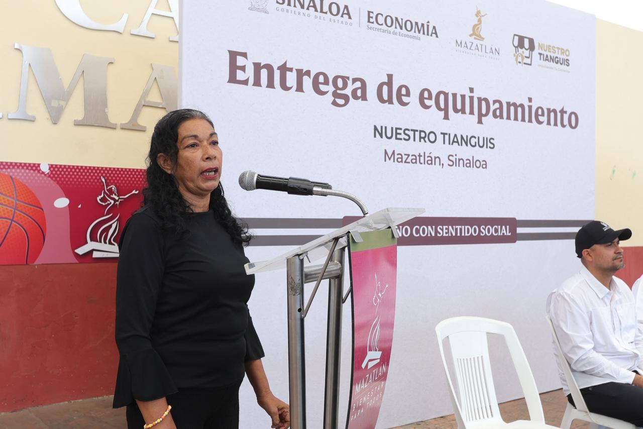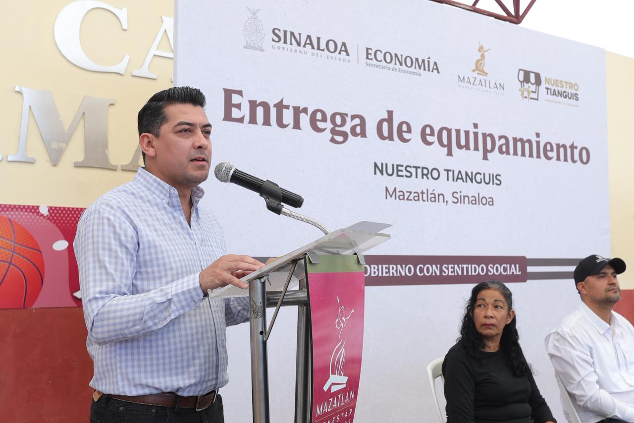 En representación del Ayuntamiento de Mazatlán, el Oficial Mayor Ángel Fernando Arballo Quintero destacó que la entrega de equipamiento representa un apoyo significativo para que las y los tianguistas continúen desarrollando su actividad económica en mejores condiciones.