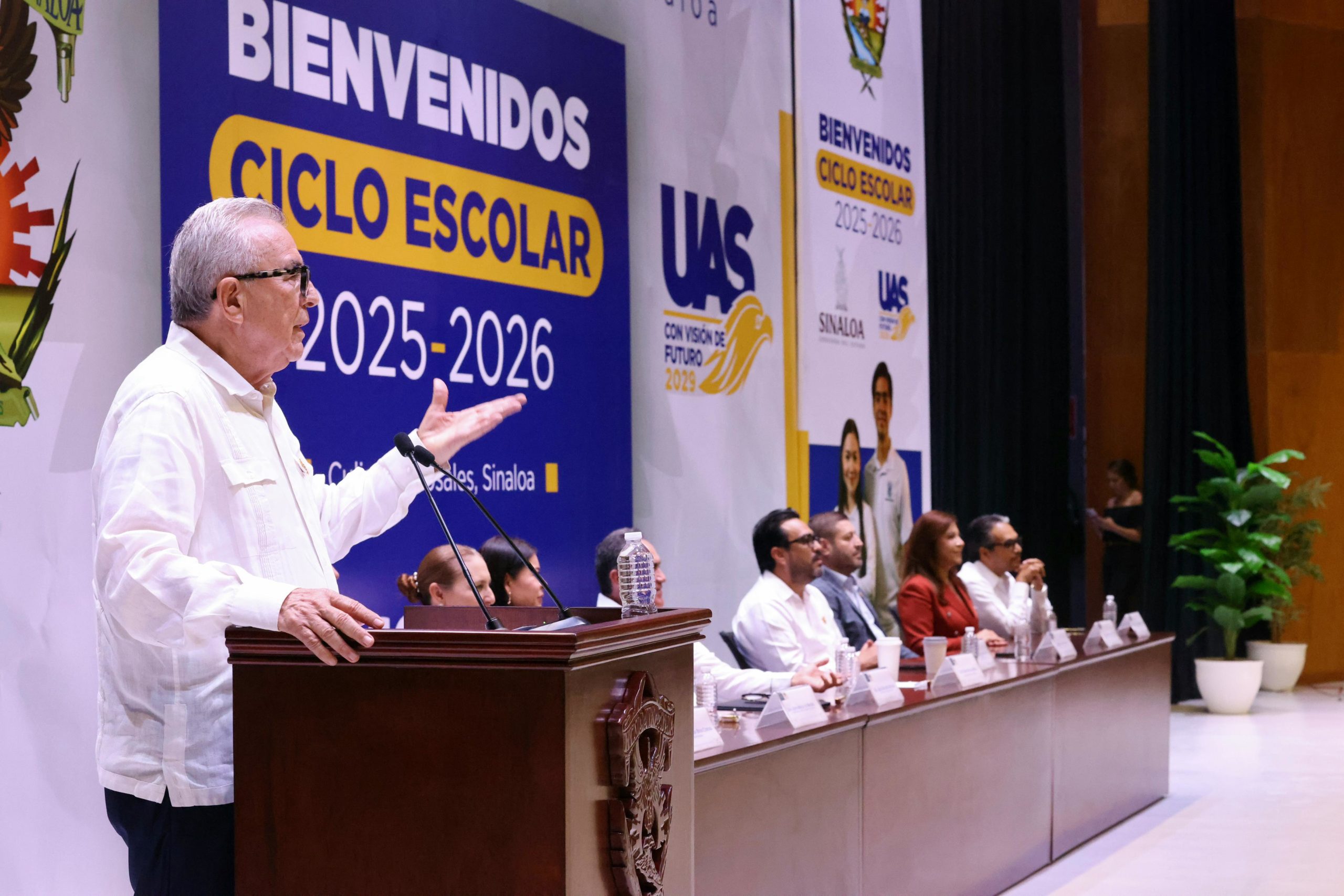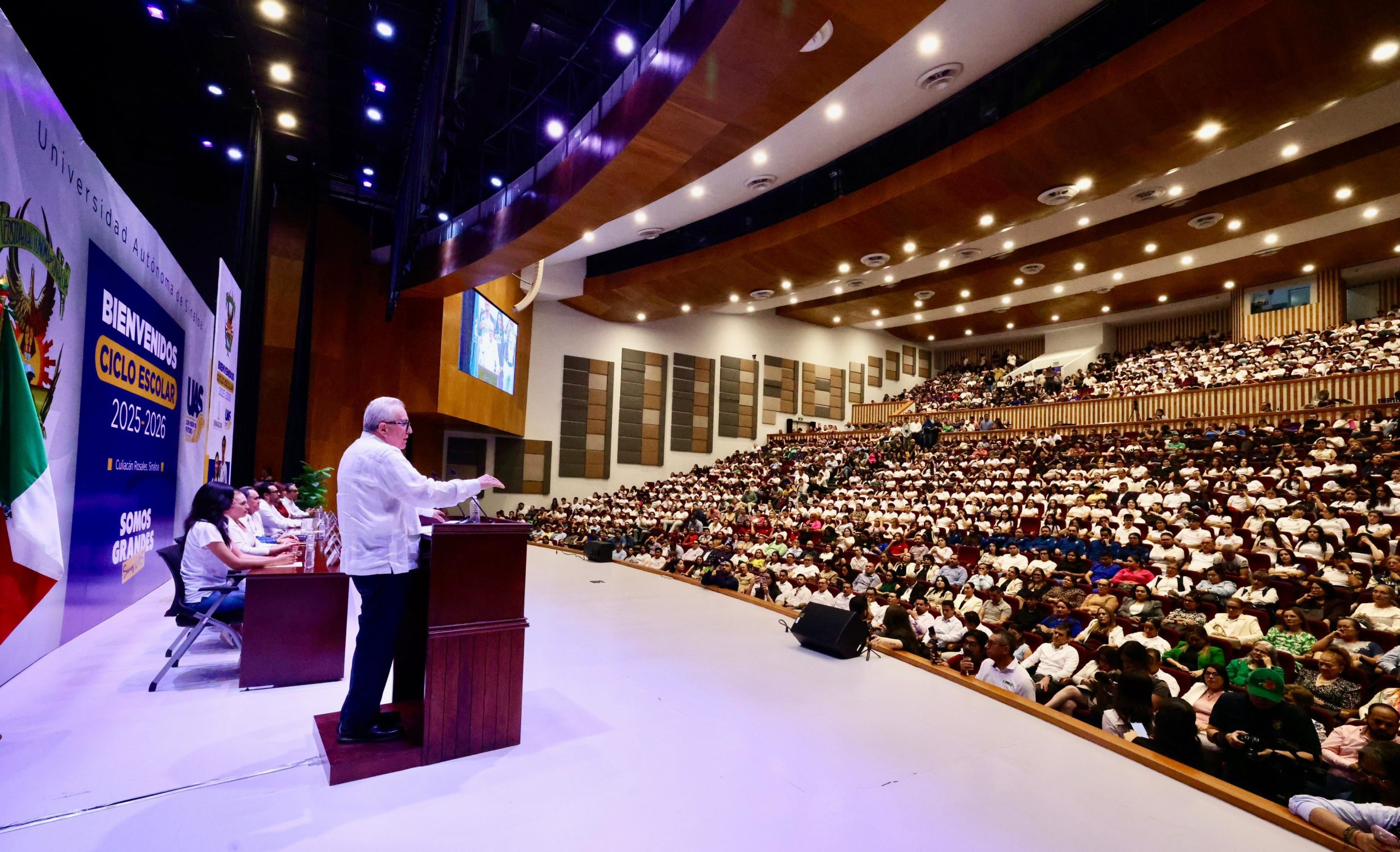 *Desde el Auditorio de la Autonomía Universitaria del Campus Buelna, el mandatario estatal puso en marcha el ciclo escolar 2025-2026 de la máxima casa de estudios