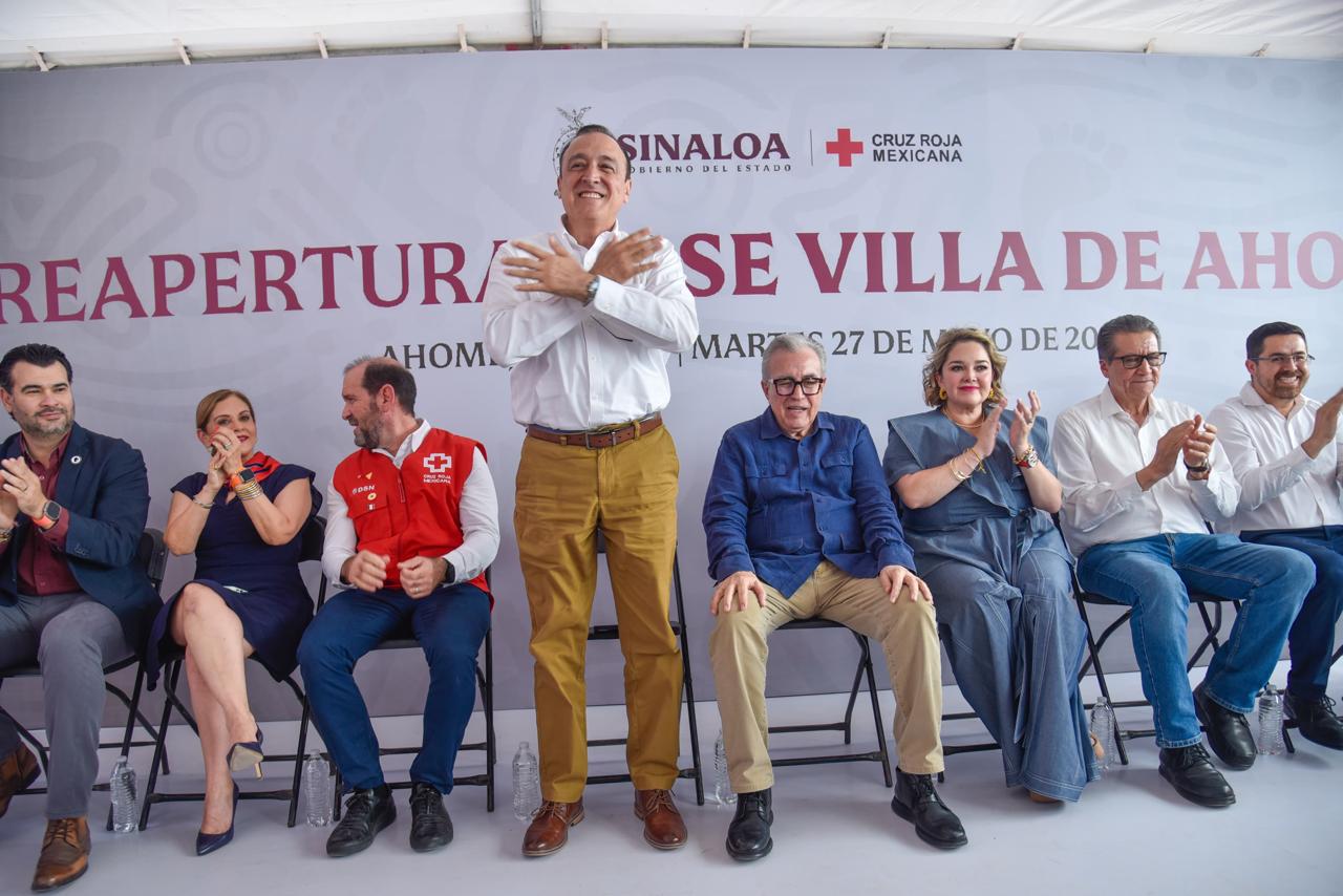 Villa de Ahome, Sinaloa. – En un ambiente bullicioso de fiesta, con porras y vivas de los juventinos voluntarios, se reabrió la base Cruz Roja de la Sindicatura de Ahome, y se donó una ambulancia nueva, por parte del Gobierno de Sinaloa.