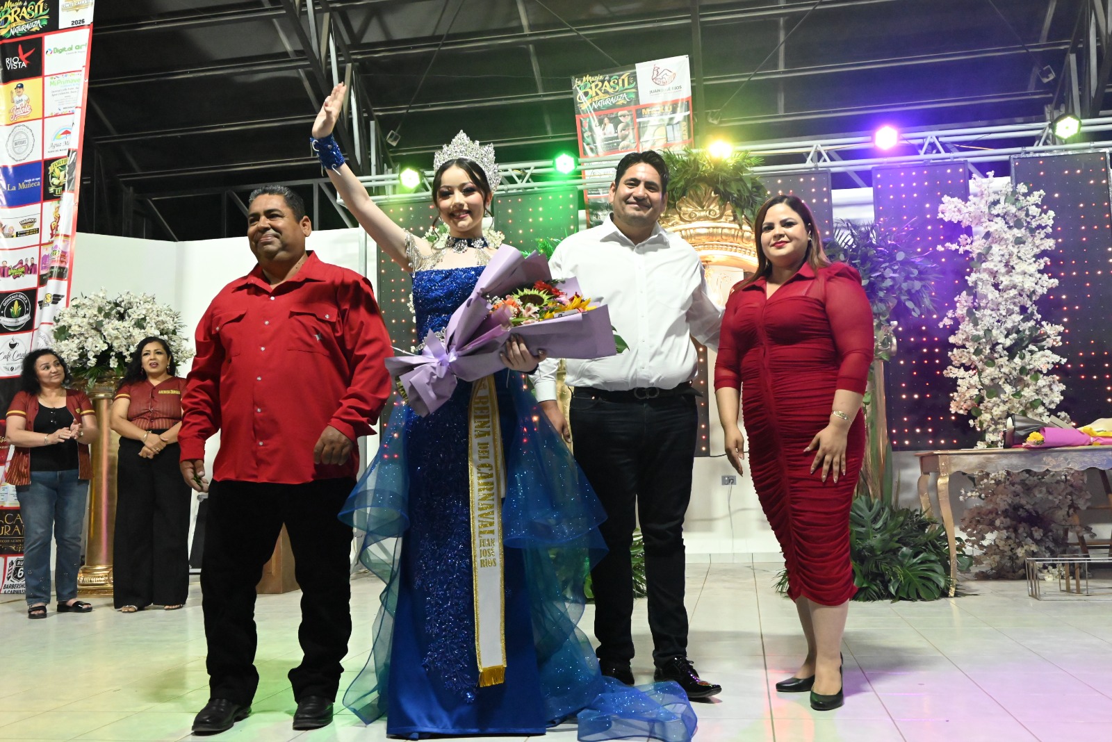 Juan José Ríos, Sinaloa. – Con éxito y emoción se realizó la coronación a reinas y rey del Carnaval Juan José Ríos 2026 donde el Comité Carnaval, el secretario Alfredo Magallanes Ovalles en representación de la alcaldesa Evangelina Llanes Carreón y autoridades municipales y ejidales participaron coronando a las nuevas figuras reales que representarán Reina Edad Avanzada, Manuelita; juegos Florales, Alejandra Herrera; reina de Cabalgateros, Paoleth Reyes Herrera; rey de la Alegría, Jesús Osuna; reina de la Diversidad, Desiré “Marimar”; realeza infantil, Sofía Soto y Reina del Carnaval 2026 Alexa Sandoval.
