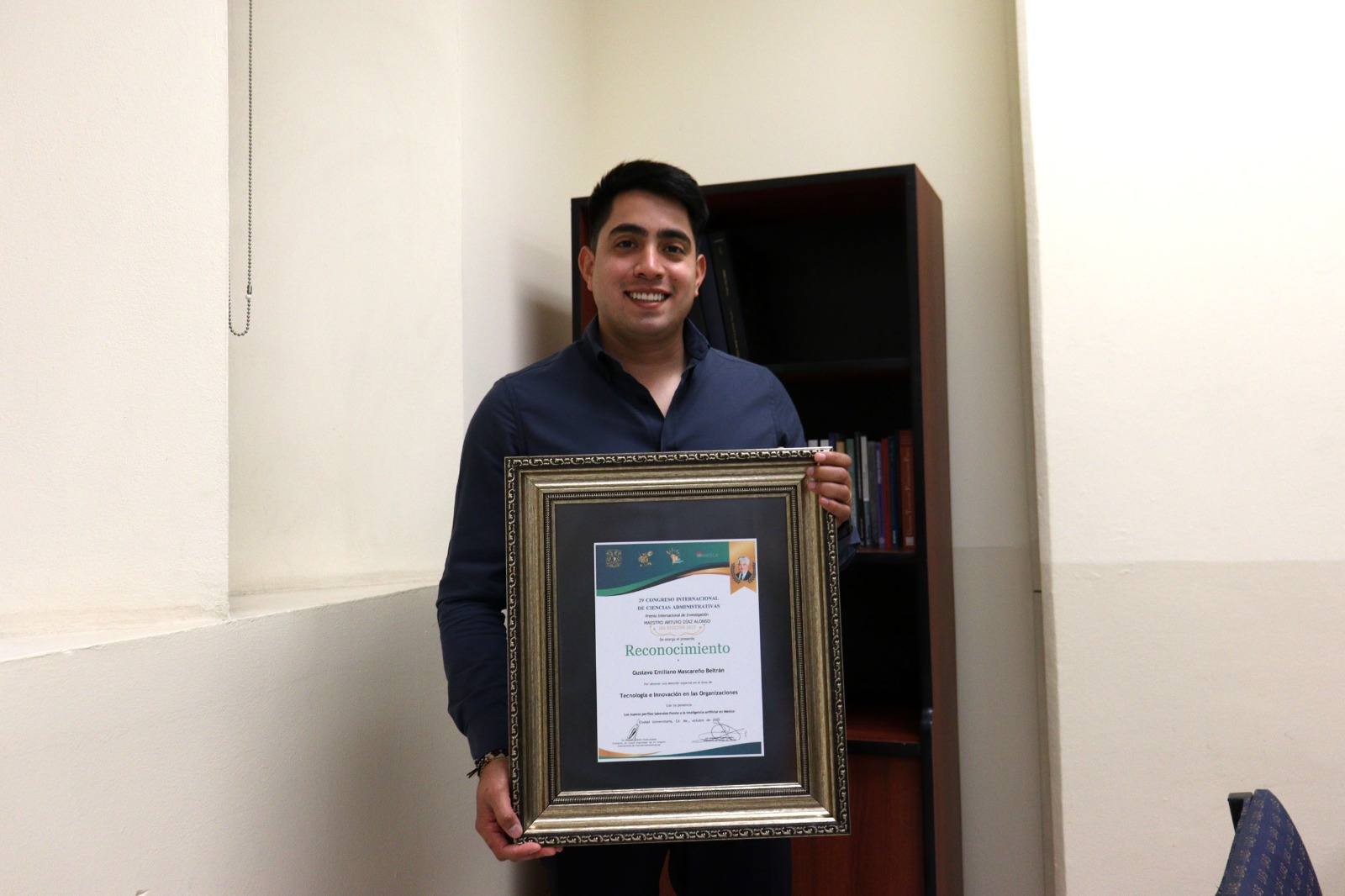 Con la ponencia “Los nuevos perfiles laborales frente a la inteligencia artificial en México”, Gustavo Emiliano Mascareño Beltrán, doctorando de la Facultad de Contaduría y Administración (FCA) de la Universidad Autónoma de Sinaloa (UAS), se hizo acreedor al Premio de Investigación Maestro Arturo Díaz Alonso. El galardón fue otorgado en el área de Tecnología e Innovación en las Organizaciones, en el marco del 29.º Congreso Internacional de Ciencias Administrativas.