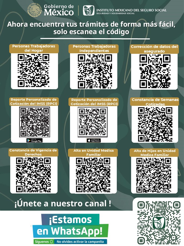 Ciudad de México. – Para facilitar el acceso inmediato, seguro y eficiente a los principales trámites y servicios del Instituto Mexicano del Seguro Social (IMSS) a derechohabientes y patrones sin necesidad de acudir presencialmente a unidades administrativas y médicas, se habilitaron códigos QR que permiten el ingreso directo a través de dispositivos móviles.