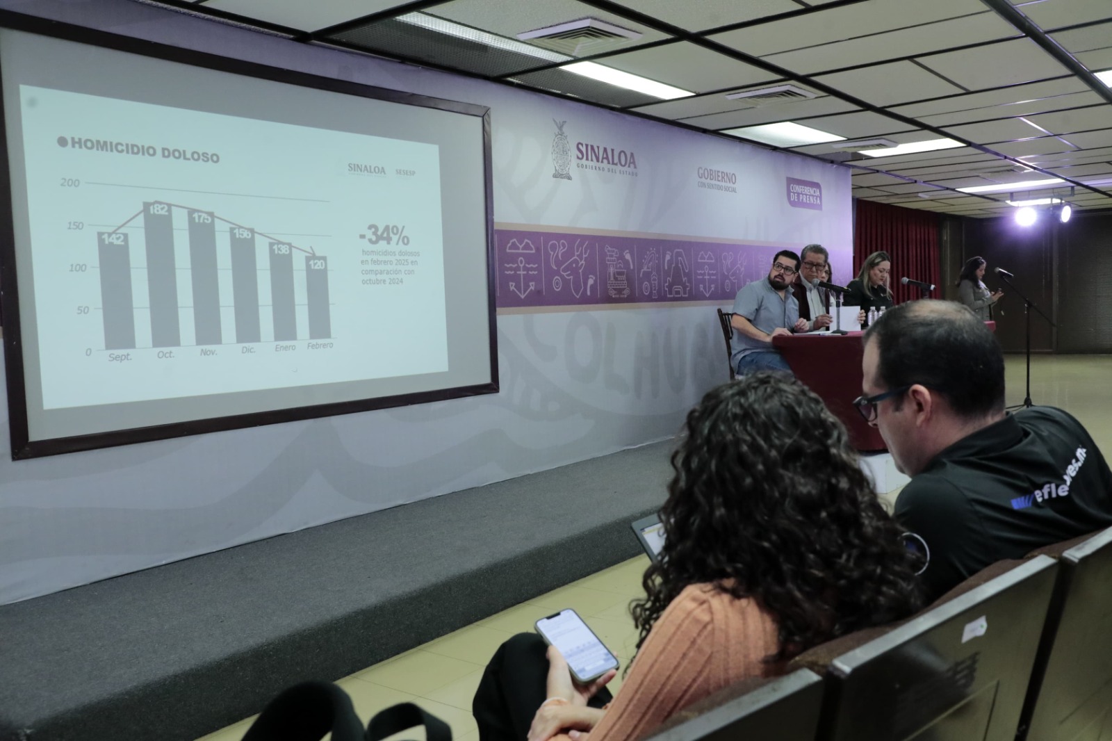 En conferencia de prensa de vocería encabezada por el Secretario General de Gobierno, Feliciano Castro Meléndrez, el titular del Secretariado Ejecutivo del Sistema Estatal de Seguridad Pública (SESESP), Ricardo Jenny del Rincón, informó que los homicidios han pasado de 182 casos en octubre a 175 en noviembre, 156 en diciembre, 138 en enero y 120 ahora en febrero, según las cifras oficiales de la Fiscalía General del Estado.